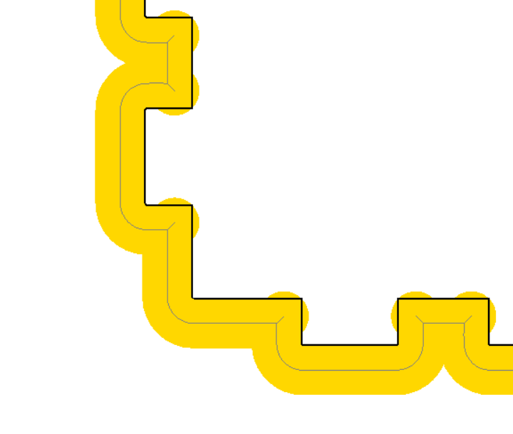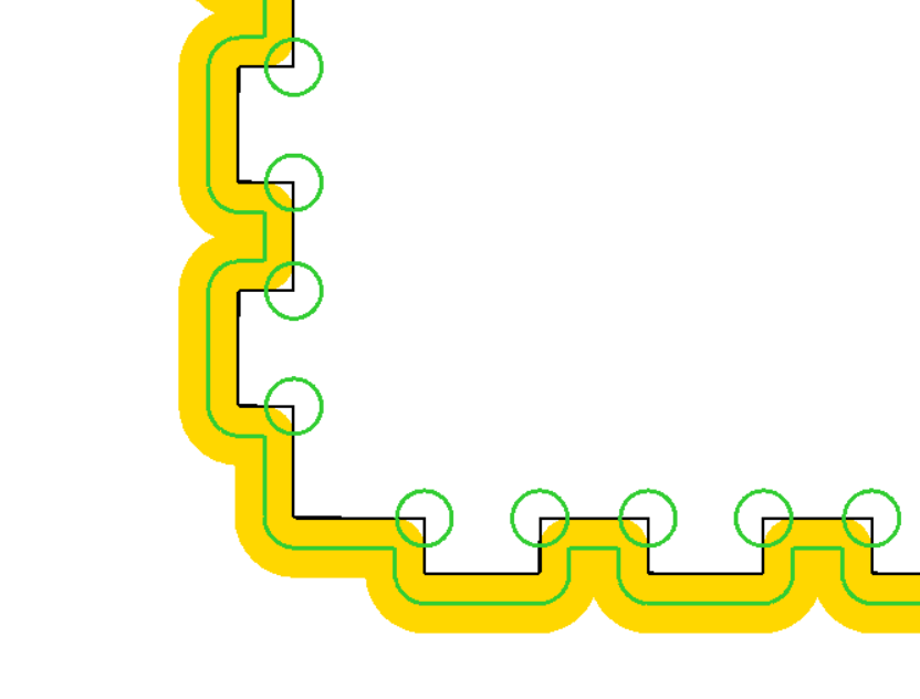 Once you create a “Part” cut path, an exterior profile, you can then optionally do an automatic operation to Add Corner Overcuts and the tool path gets modified.