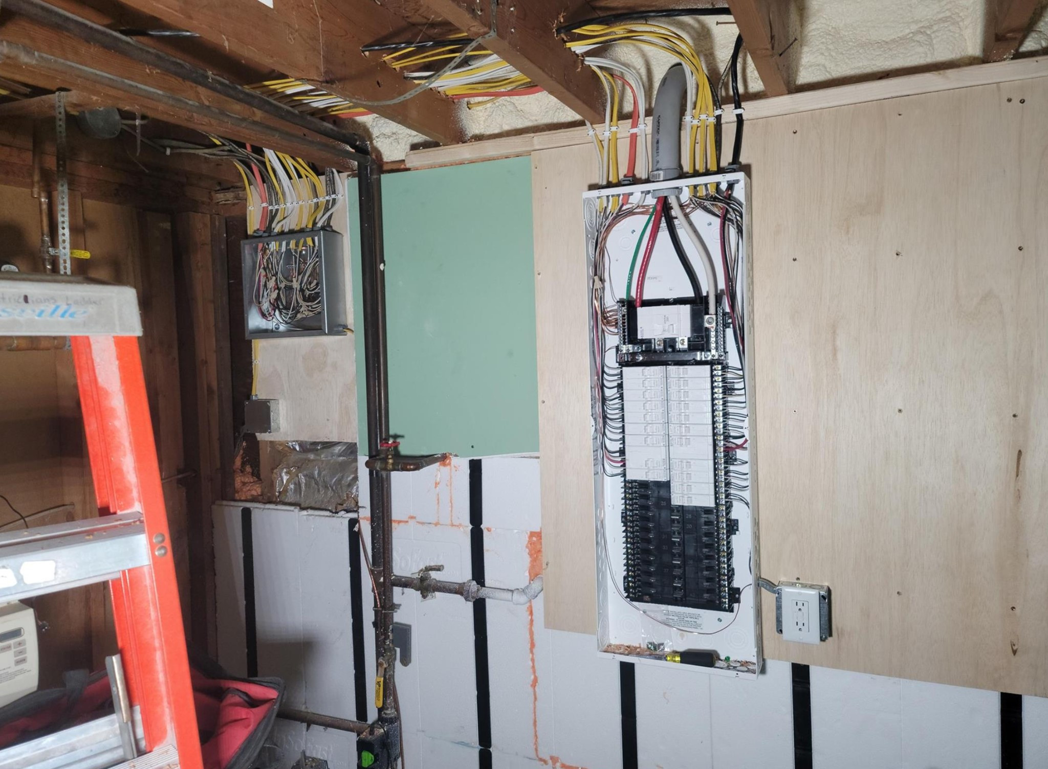 I also had the home electrical panel replaced to bring it up to code. Installed a smart panel, and now have a 100 amp dedicated circuit running to the back shop/garage where the CNC is. This entire project involved ripping out a lot of water damaged insulation, furring strips, etc, and spray foaming and insulating the basement walls to make room for the new panel.