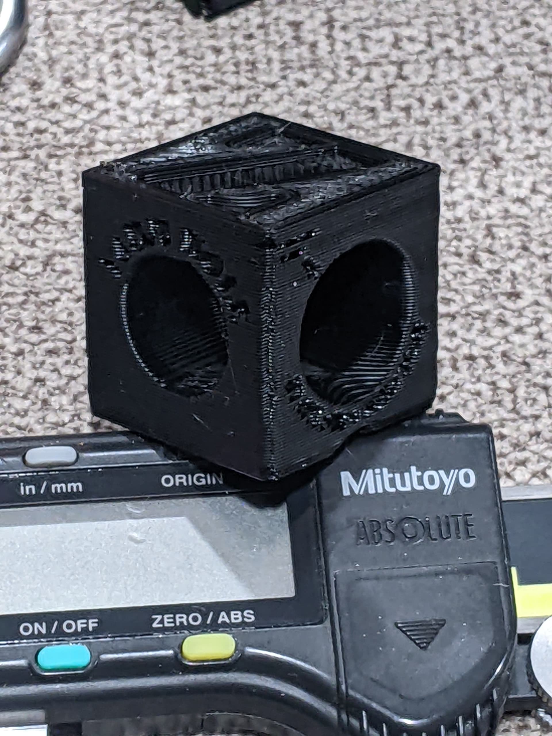 Because the next print turned out less than ideal. The holes are still squished in z and there is some ringing and corner artifacts around these holes. Changes to pressure advance and square corner velocity maybe need to be made. I loosened the belts and made sure it was still square, so perhaps some skew correction is needed. There will be some more adjustments and a few cubes printed hopefully before the petg runs out and it has to switch to another color of pla.
