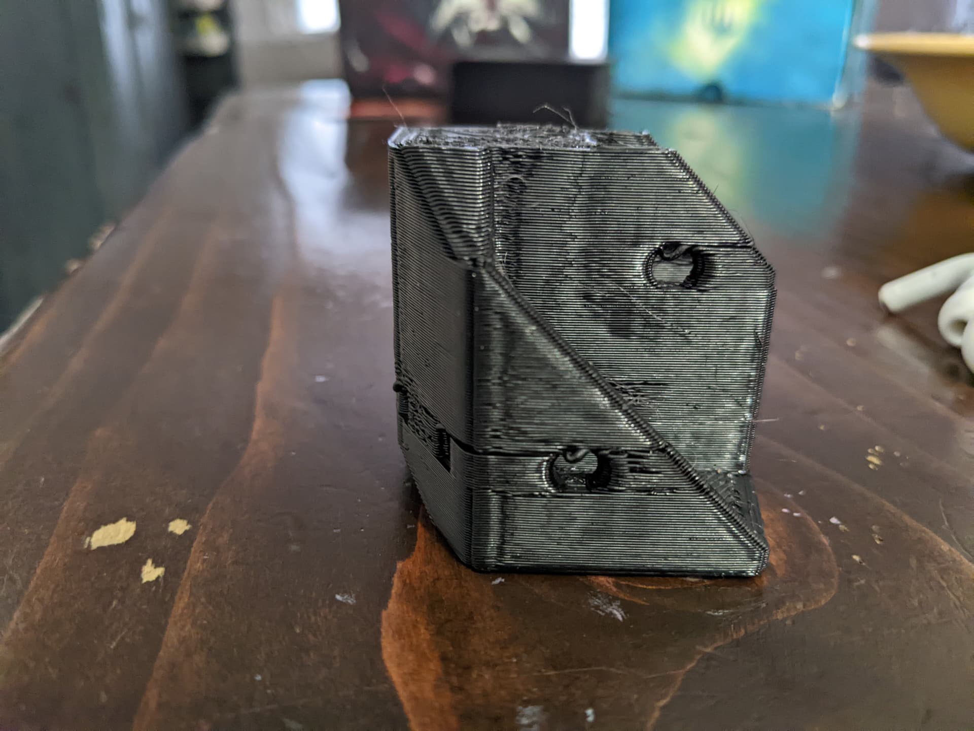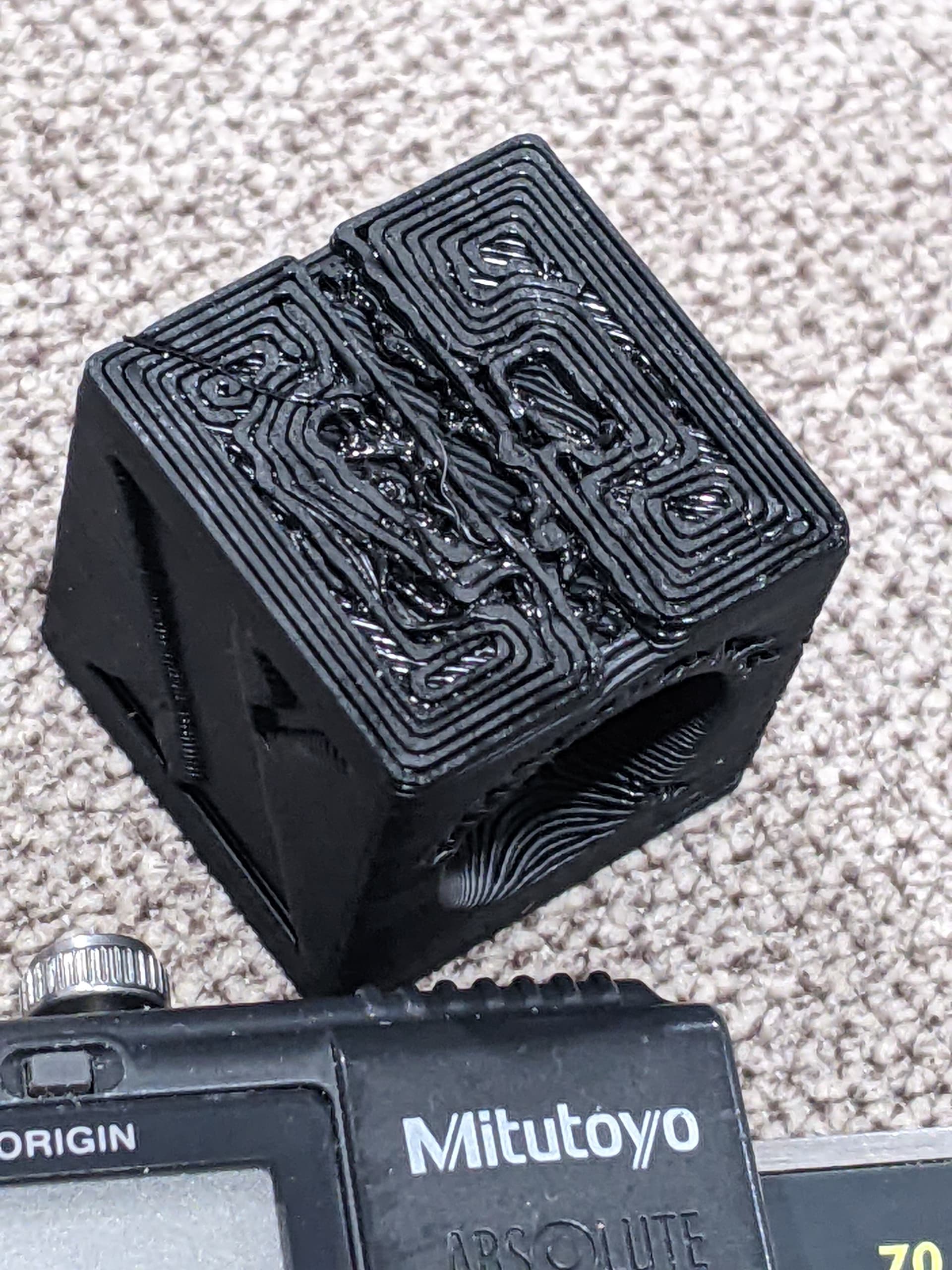 My skewed X rail maybe in part due to my pulley orientations being wrong. Noticed in Oct but still haven’t fixed, because the printer was printing fine, at least I thought so until I tried printing close to @Lithium366’s accelerations/speeds. Will update if fixing my pulley orientation helps reduce physical X rail skew. First though, before anymore variables/changes, am trying out a new part cooling duct design…