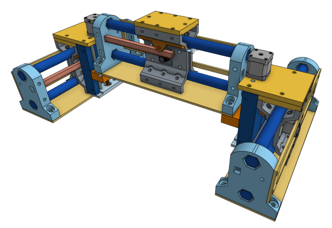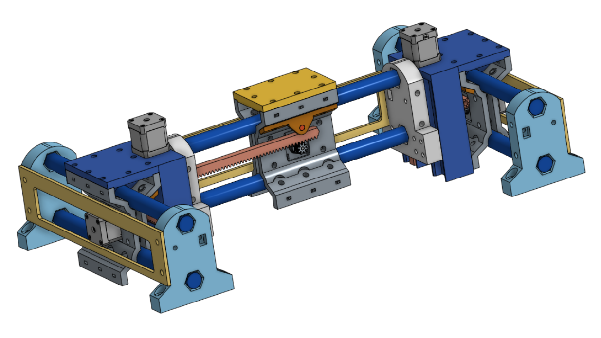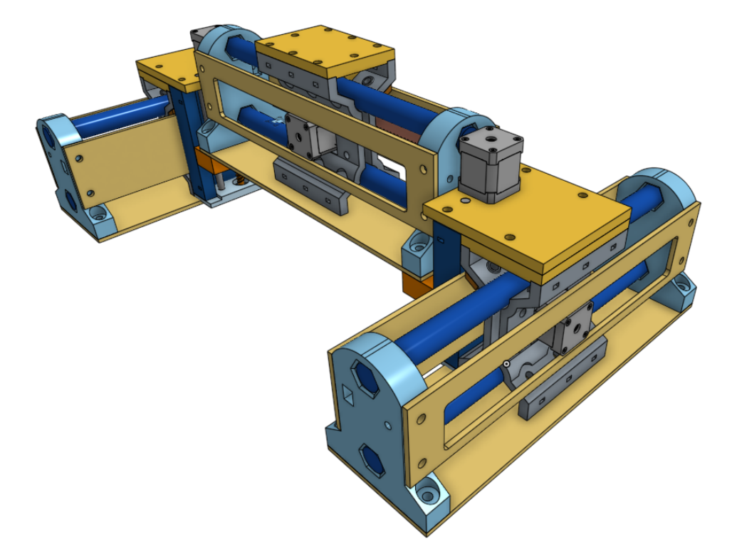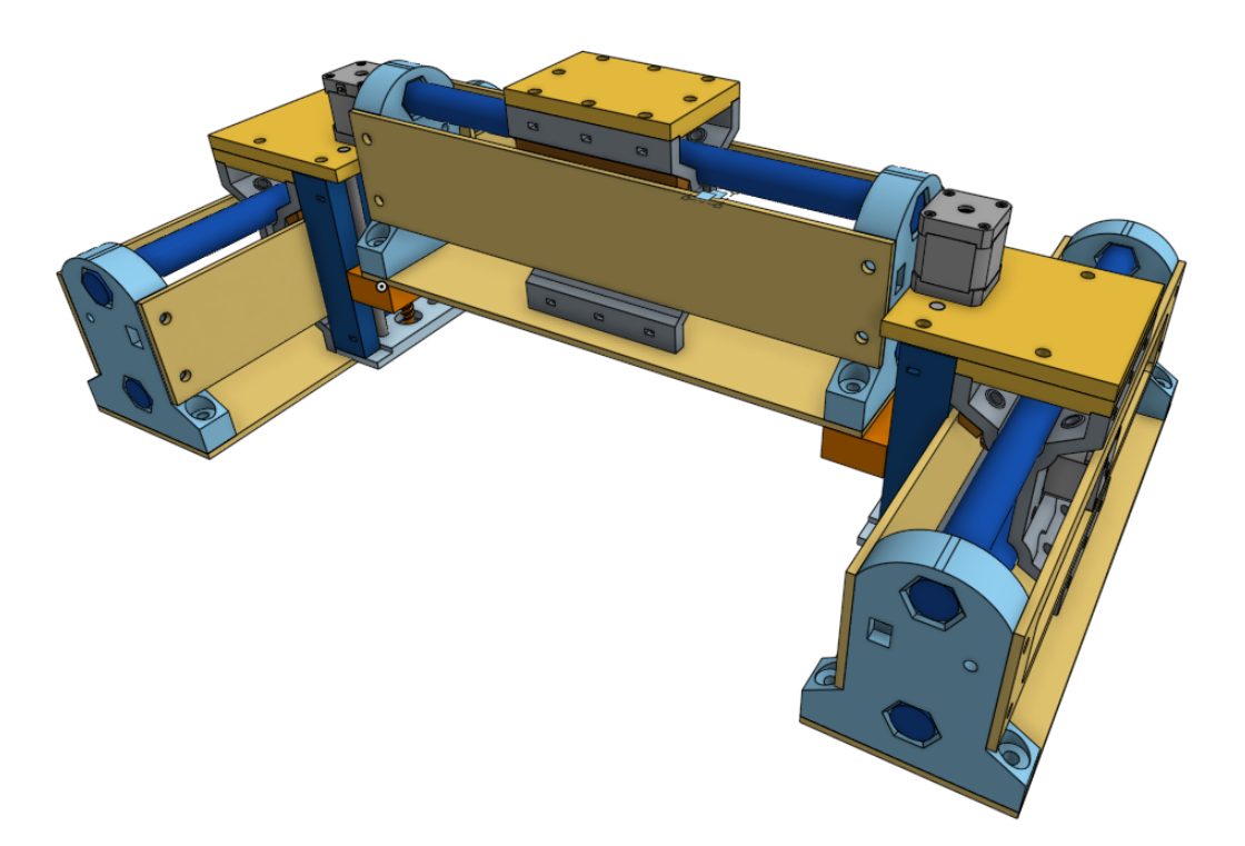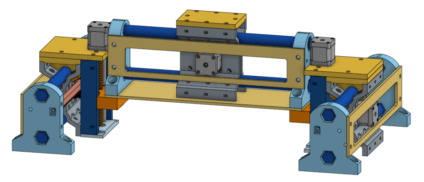 In the following renders I’m showing flat-panel plywood stiffeners in place that I think will make the whole machine more rigid but adjustments will need to be made to provide a tad more clearance between parts. I really think now that the entire machine can be virtually three identical linear stages and the two Z-lift assemblies. All that would remain is a fixed-position tool mount on the gantry’s X-carriage… which I envision would mount similar to the lift assemblies on the Y-carriages.