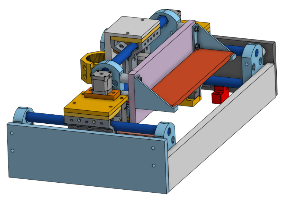 As you can see, MPR&P-V2 has morphed into a partially-enclosed machine⦠if you choose to add the side and back panels as seen in these renders. I envision a removable panel for the front with printed hooks that hang over the front side-board spacers⦠and allows for loading material and setting zeros before job start.