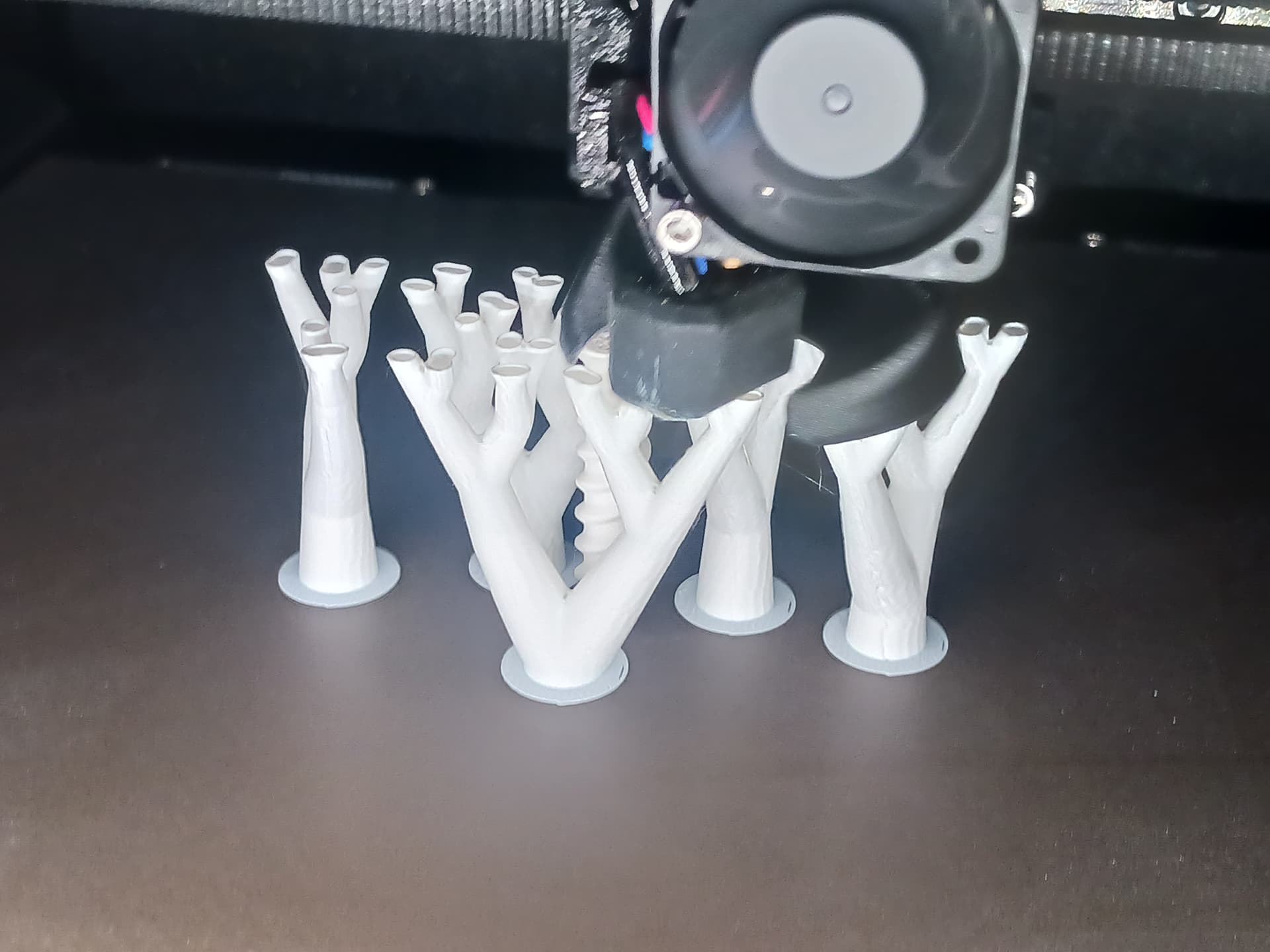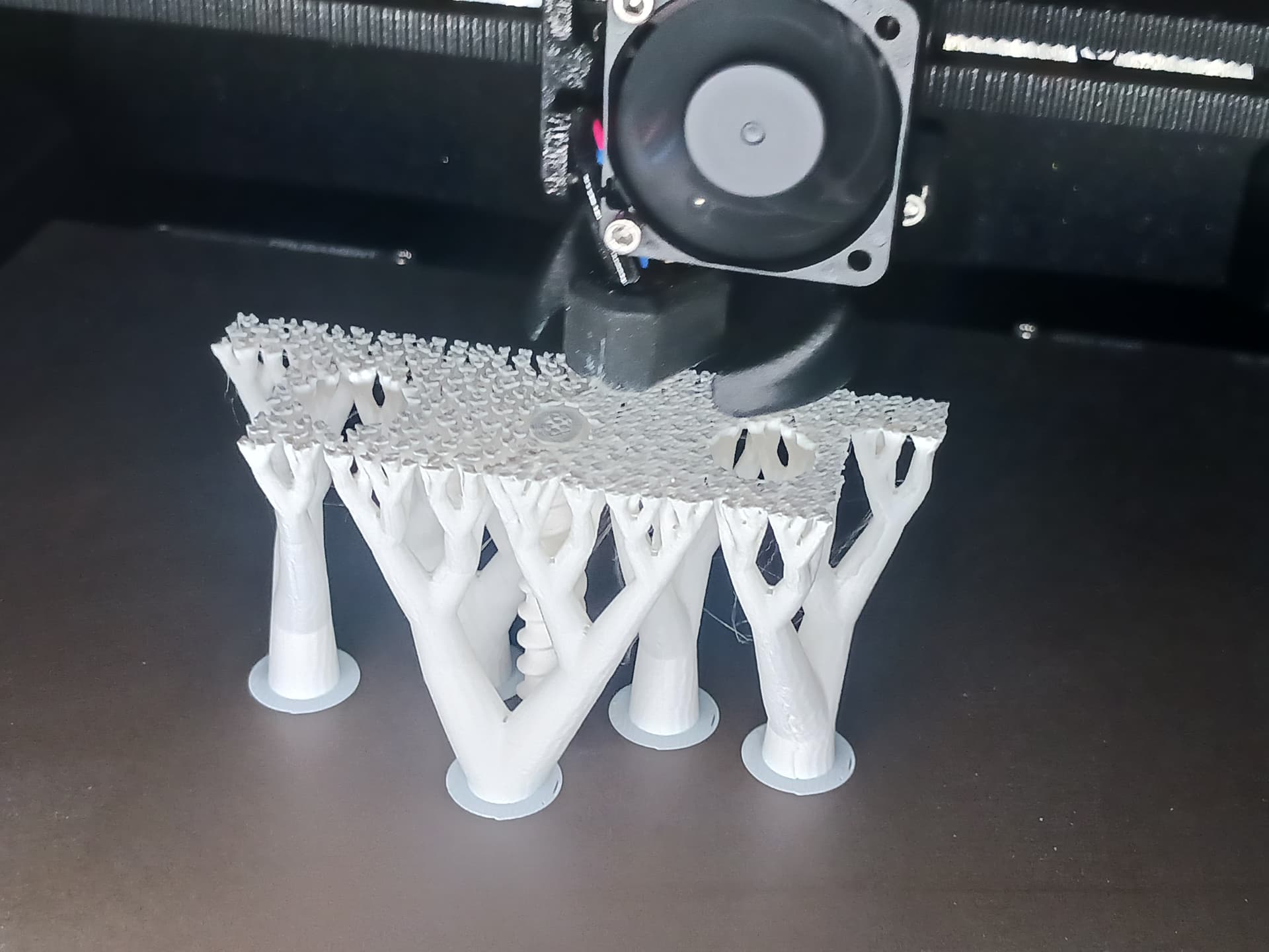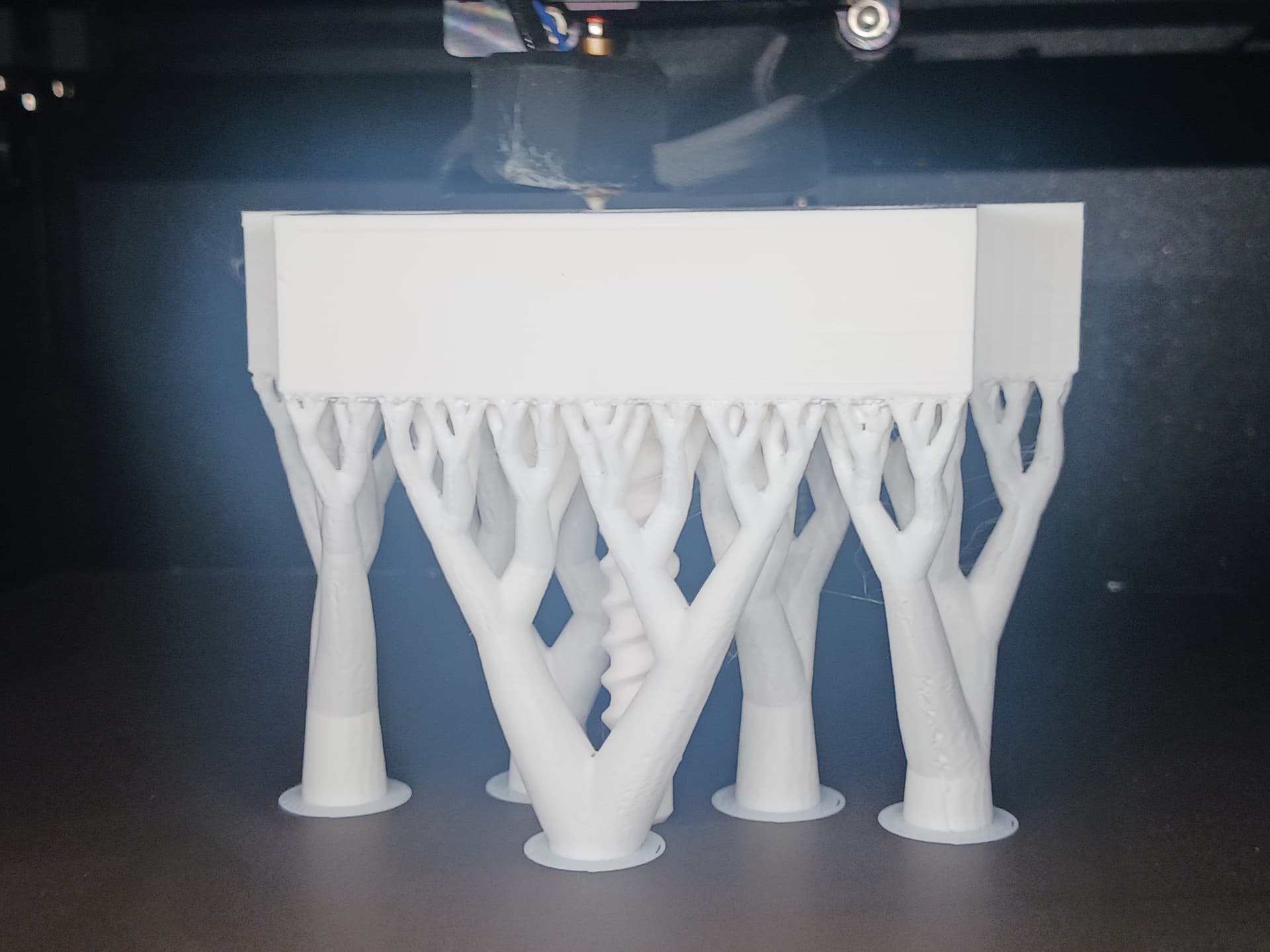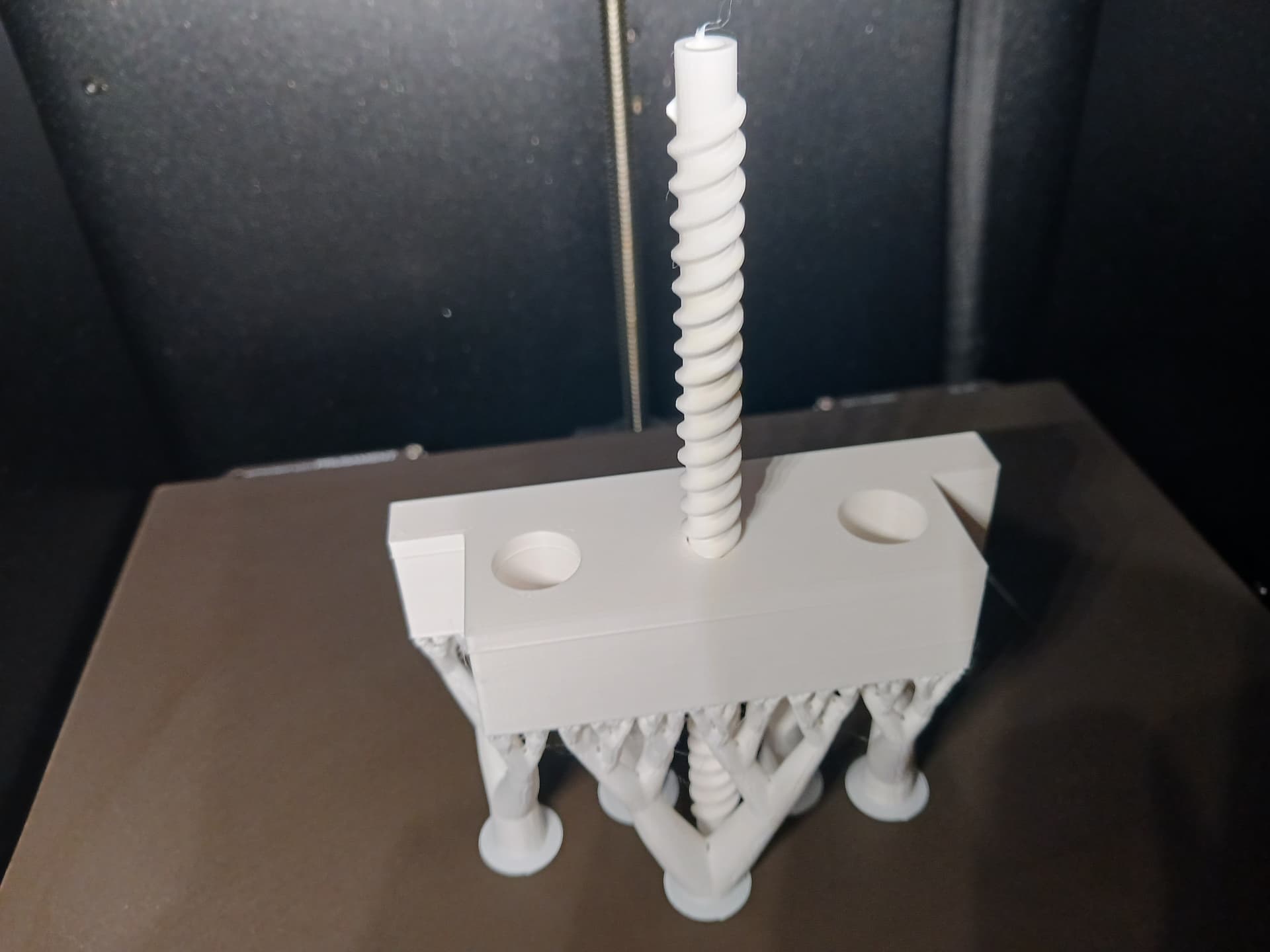 I wasnāt really trying to showcase itās speed. I was shooting for 5000 mm/min over 100mm range with my little 8-bit Arduino controller⦠steps/mm setting of 320.32. I just wanted to see what it could do. The printed screw is a 2-start thread with 15 turns in 150mm⦠a trapeziodal thread profile and surprisingly easy to produce in Onshape. And, of course, I had to try printing it in place on my new fancy printer with that silly organic/tree supportā¦