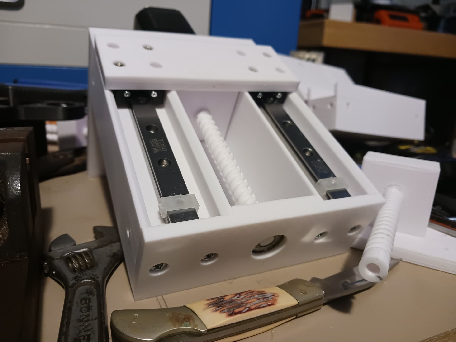 The ārightā way to do it, of course, would be to actually use 8mm/10mm polished rod and real LM8UU/LM10UU linear bearings. While those would certainly be more expensive than the common bolts and printed bearings Iām using here⦠they should be far less expensive than MGN12 linear rails, as used in LR4 and better even yet.