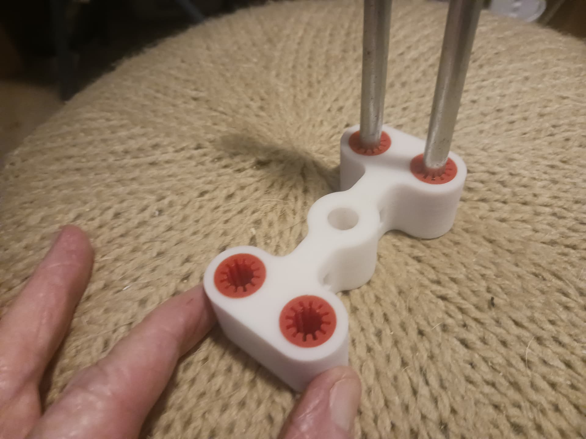 First run of a guide-rod version of the MPR&P-V2 Z-lift assembly. Guide rods are common 5/16" x 8" hex bolts from Lowes and run in printed ālinear bearingsā friction-fit into the ānutā. Printed screw and ānutā pitch is about 10mm per revolution. Itās noisy yet⦠but it is running with no lubrication or significant load. So, who knows?