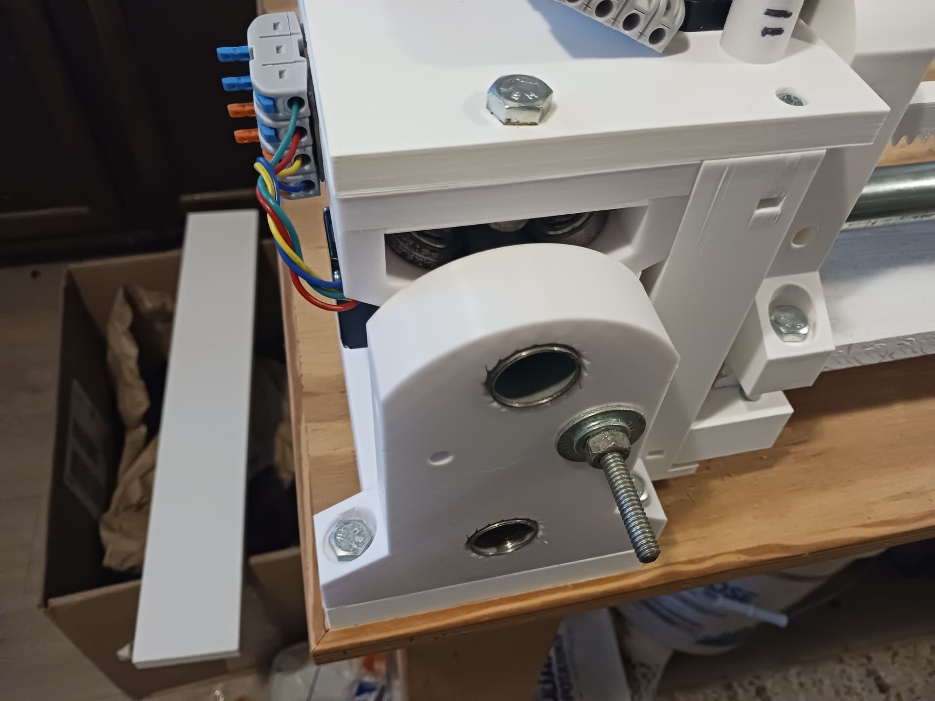 All garden-variety stuff from the hardware store and online… and I’m still working from my junk box, except for filament. Stepper motors, skate bearings, and two or three rolls of PLA/PLA+ filament… no expensive specialty stuff.