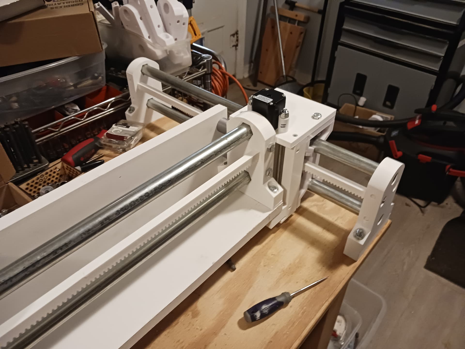 However… I do wonder if this could be smooth enough and cheap enough to actually use it with kids. You would want to reduce the stepper motor current to almost nothing and add in a playstation controller. Replace the tool with a washable marker and you would have a fun, educational robot that could do weird fun etchasketch style drawings. Or put on a servo and have a fun way to organize the markers or pom poms or roll dice or something. That would be pretty great.