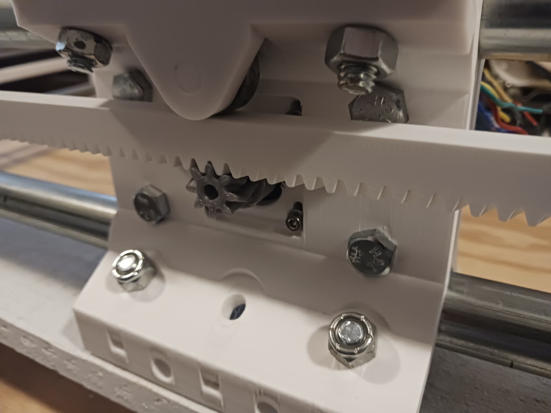 I certainly don’t plan on going any larger on my own machine… and I guess I was really just thinking that the threaded rod and rack can be as long as you want. I made this machine to fit the top of the bench it is sitting on… and the gantry’s threaded rod is an uncut 36". I was being lazy…