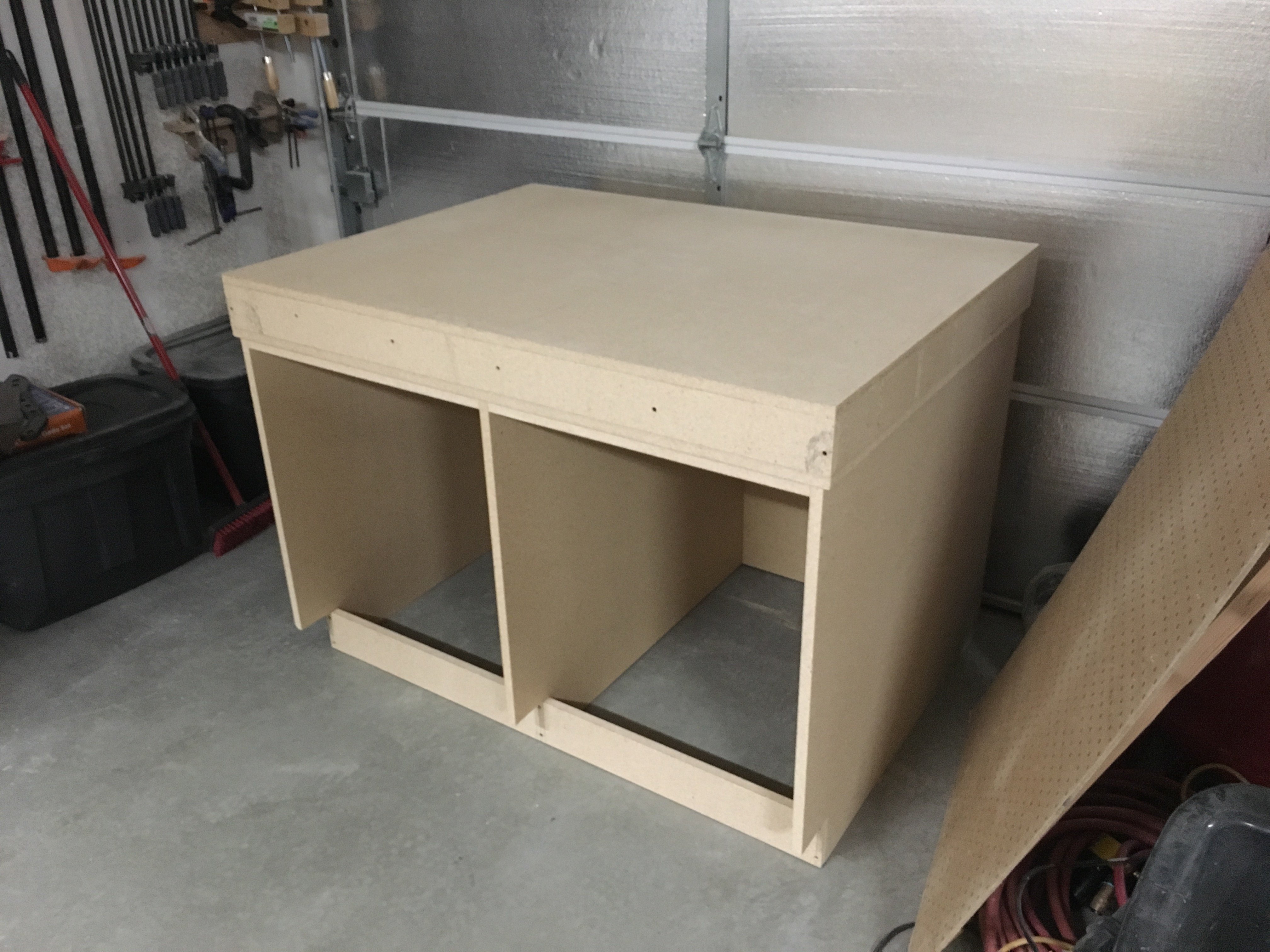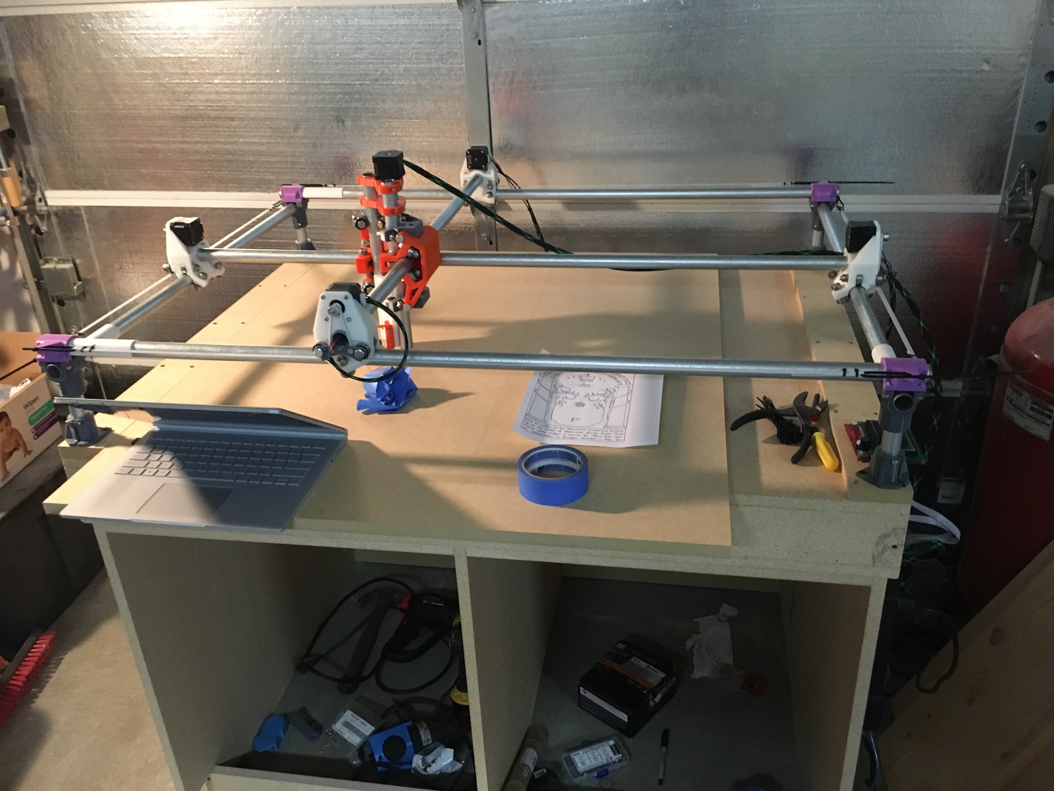 So I got my tortion box table done for my mpcnc. It is 4’ by 3’. I am going to build some drawers for the base later. It is made of cheap 3/4 particle board with the ribs 3" thick all pocket screwed together. It is HEAVY. Using my starett straight edge in the center(24") I can’t get my 1.5/1000" feeler guage under it Gonna get on putting it together now! Everythings already printed.