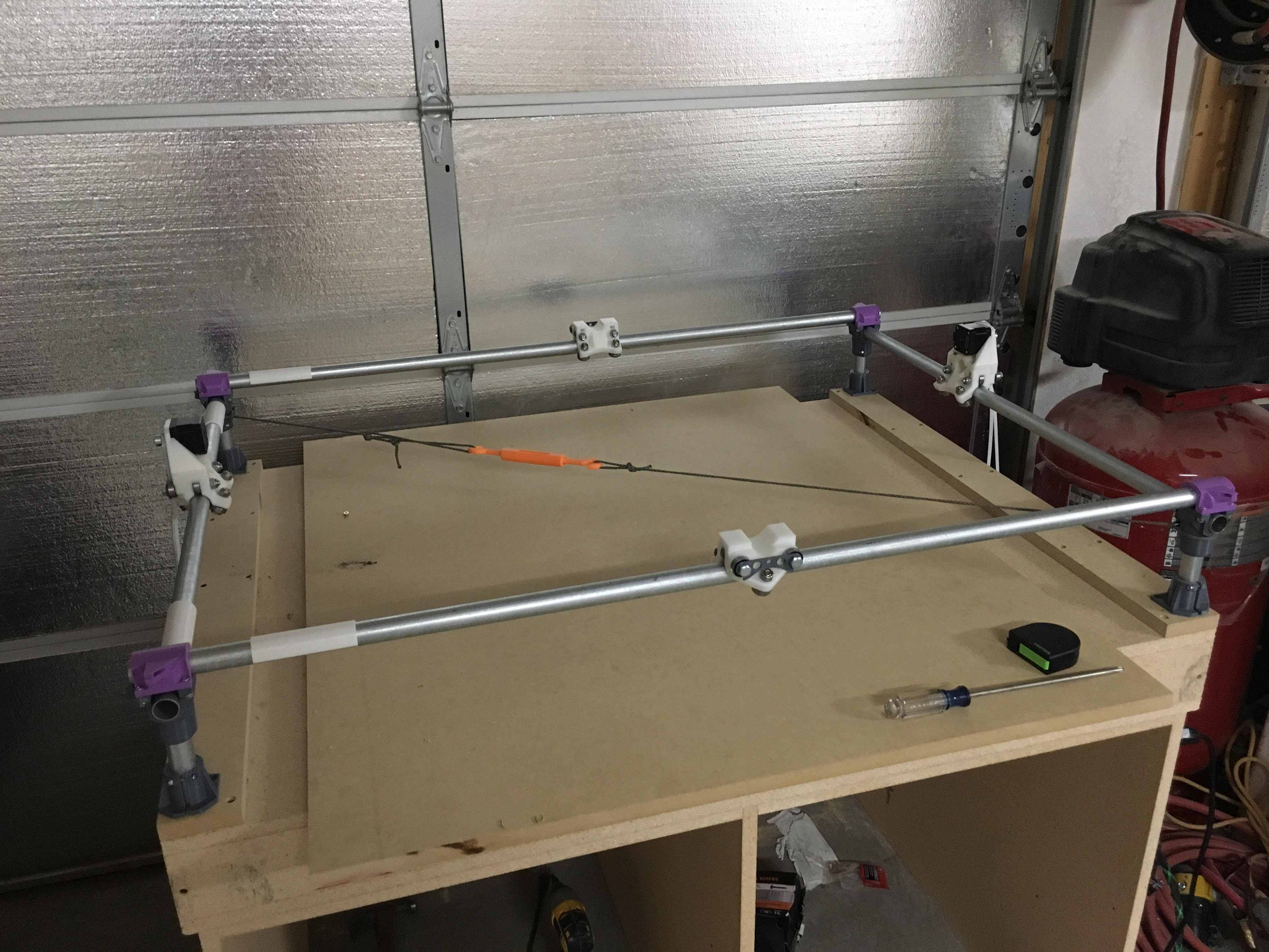 The center rails didn’t really stay square with the outer rails, so I checked the outer rails for square and it was about 5mm out of square. I decided to take it apart and reput it together as square as I could. I used a turnbuckle that I printed from thingiverse, it worked pretty good, after a couple of prints. https://www.thingiverse.com/make:376442