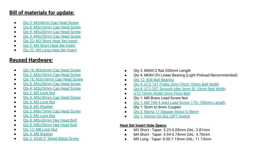 The new manual looks mint. The only thing that jumps out at me is you don’t have a step regarding belt installation in the X steppers. Whilst I think it is fairly apparent how they run - perhaps for new players it wouldn’t hurt to add a picture?