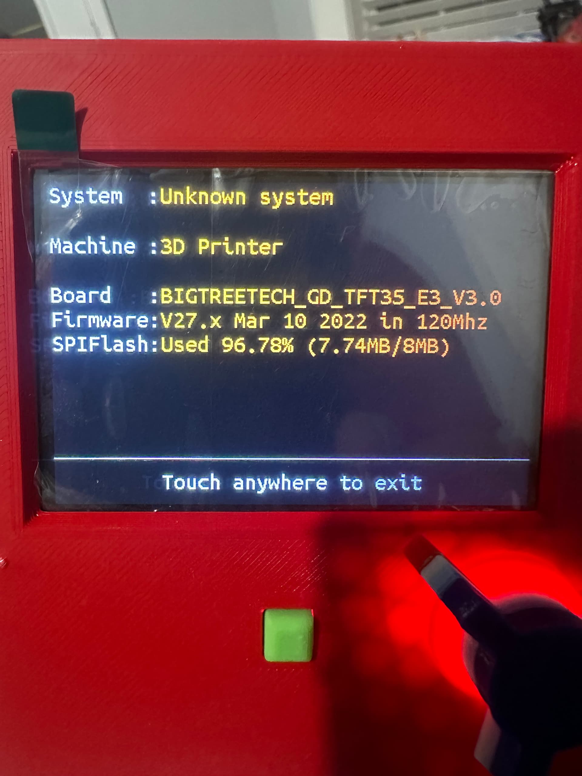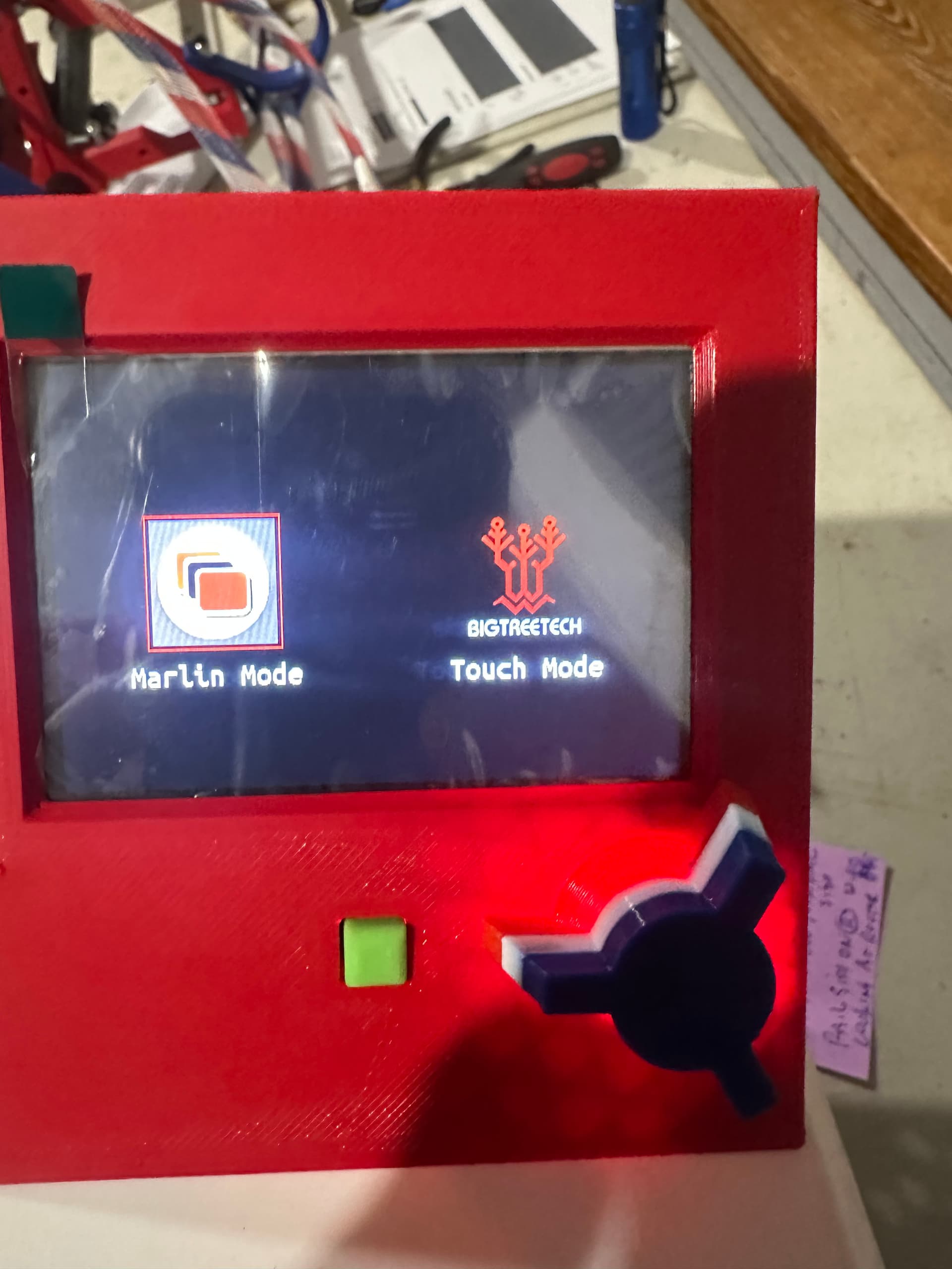 I think that is the display firmware (not the control board), it looks normal from what I recall. Hold the knob for a few seconds to get to the touch screen (you are currently in Marlin mode, can only enter gcode commands from there).