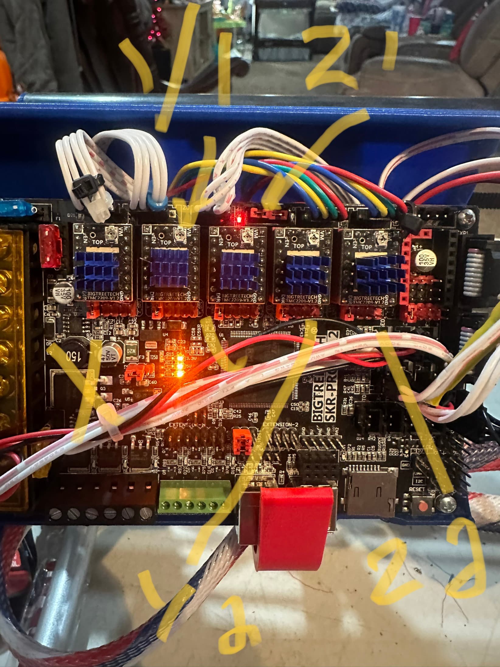 I donât have my machine powered up right now, so I canât verify, but I think that there may be a light beside the Z1 connector (which has jumpers installed and doesnât have a driver associated with it). It is showing lit in all of your photos, so it may be always on.