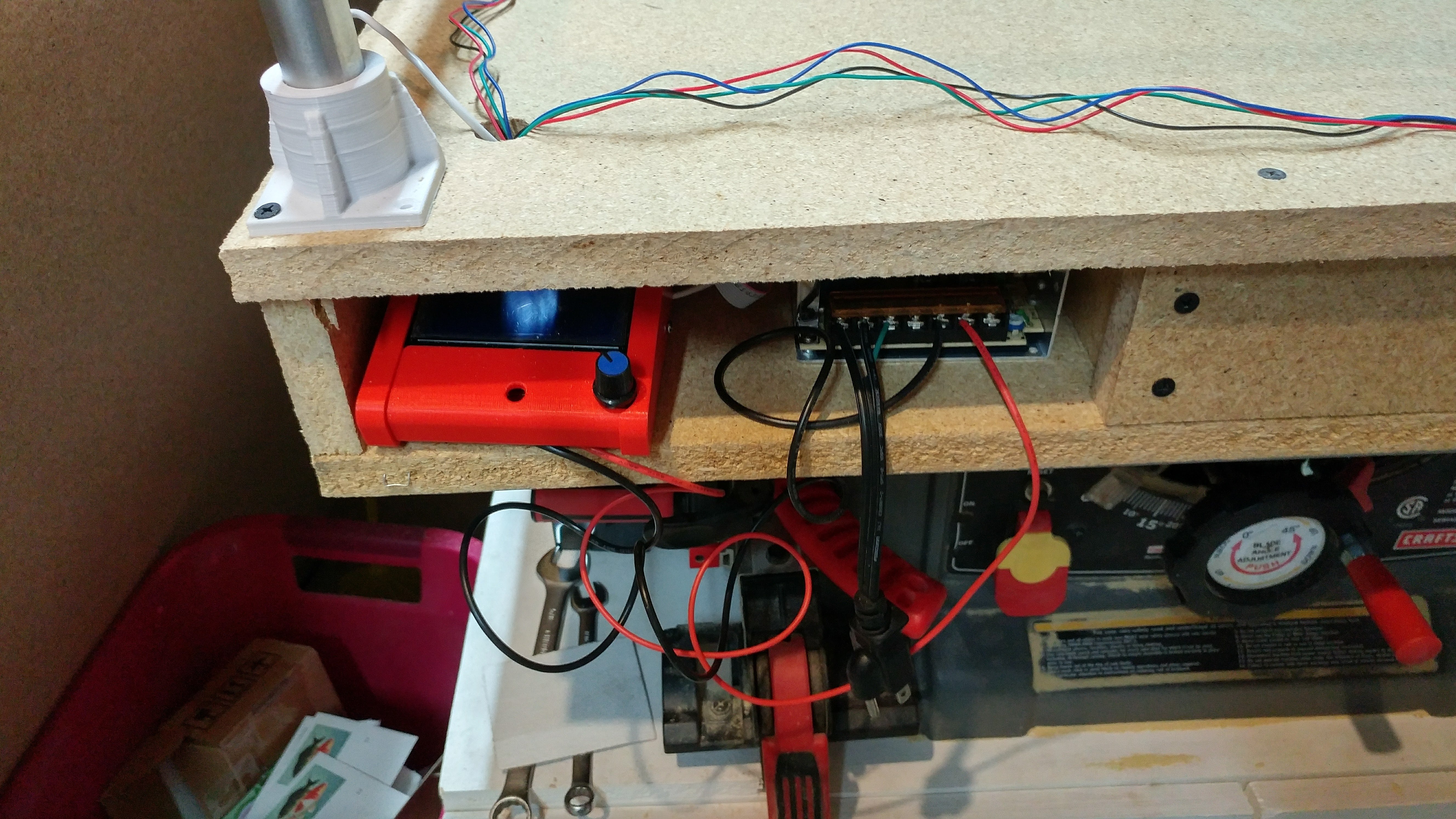 Yes. That’s a Table saw under there. It’s not a very good one, but it still somewhat gets the job done. The spindle that’s supposed to lift the arbor no longer works, so you have to reach down and pull up on the bottom of the blade while turning the knob to raise it.