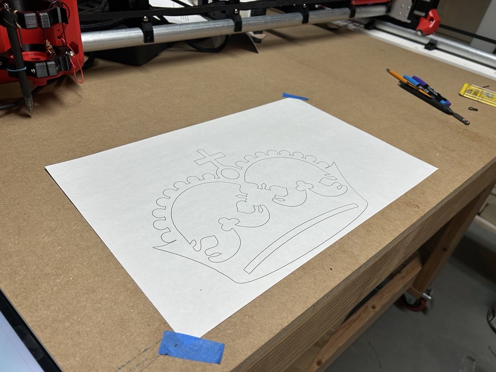 Ok..spent the last day or two reading and using Ryan’s probe g-code which a found in one of the forums. After all said and done, I finally got the obligatory crown plotted with a pen!