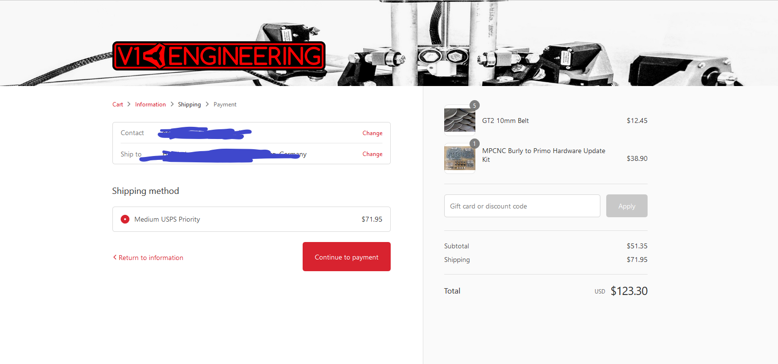 There is no way the shipping is that much from my site if you only bought the upgrade kit and a normal amount of belt. I designed it to fit in a small flat rate box $26 international.