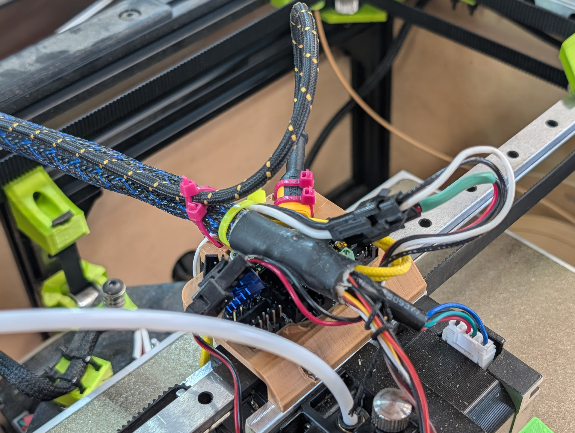 This weekends goal (once the shop heater warms up) is to maybe, possibly try to get CAN working. I have the board. Last night I modified my wire mount to allow me to bolt the EBB36 to it. I have a bit more work to do with the CAD for zip tying the cables to it.