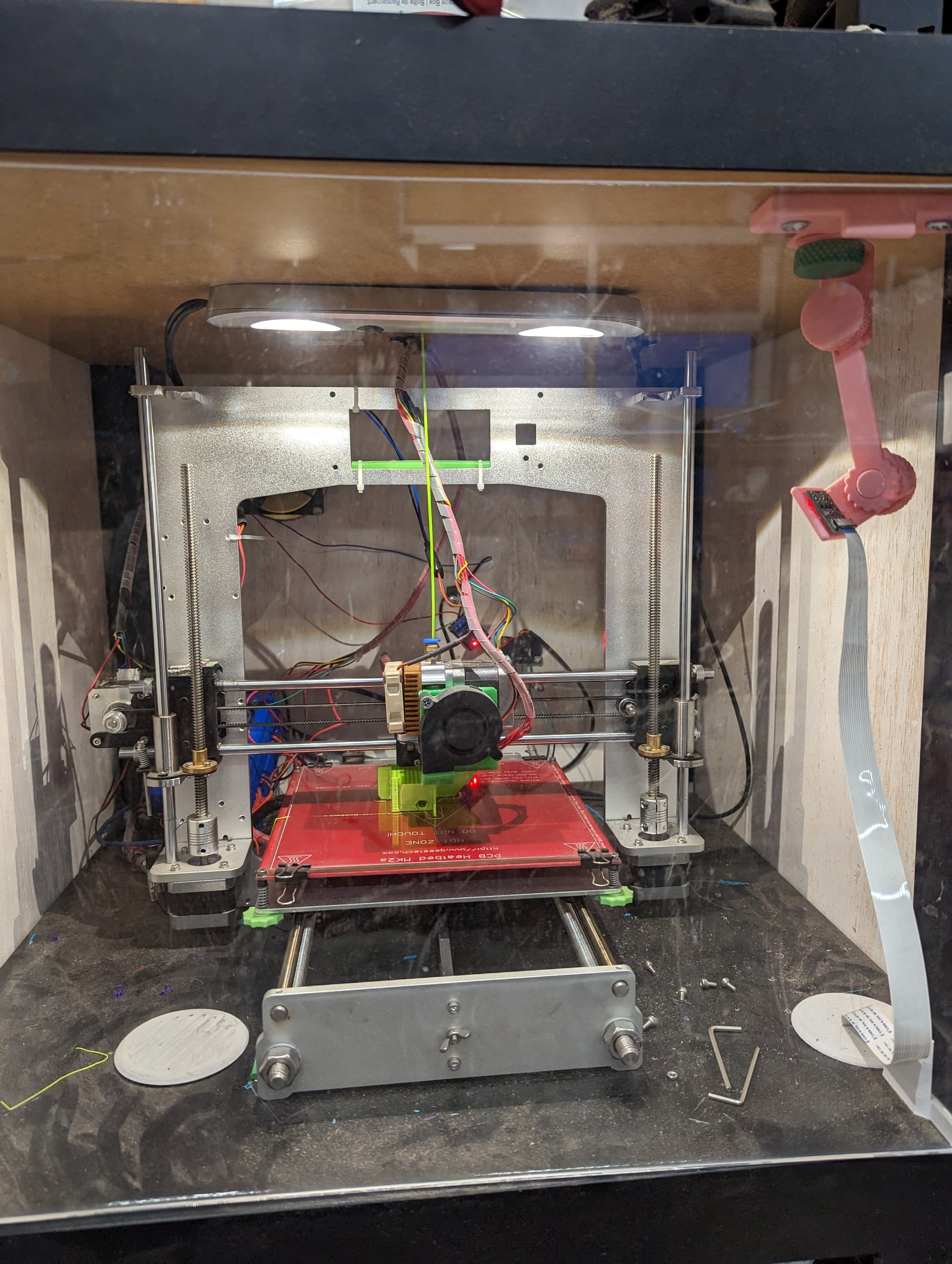 My current 3d printer is still working on parts. It made it through the failed print from yesterday and is now working on the parts cooler fan mount.