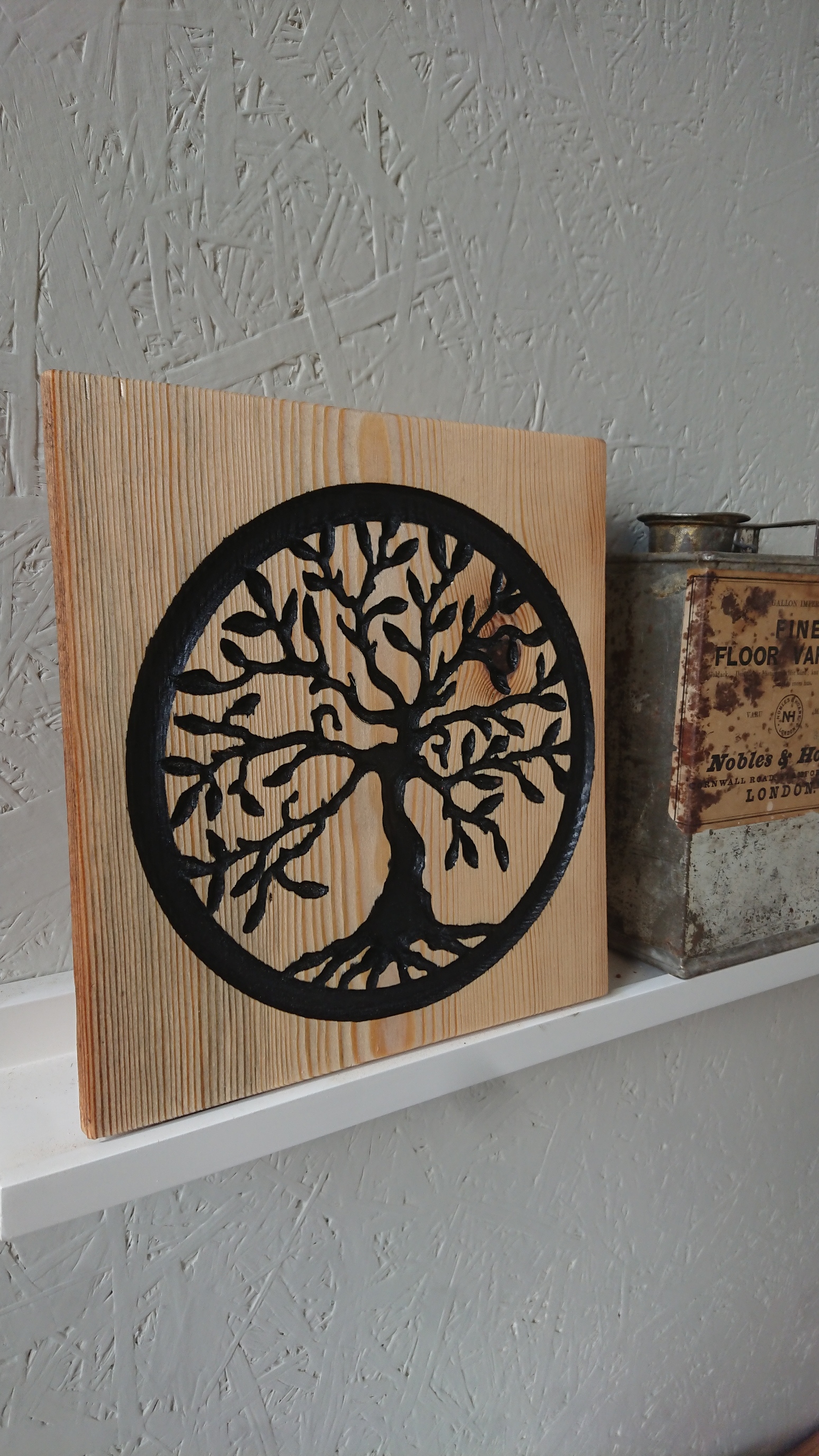 Wanted to try out some V carving and found this pretty tree. I do however really need to source some harder wood. This is carved in pine and while the end result is fine, the time spent with a Dremel was a bit too much. Also, why did I pick a piece with a branch eye knot?! :-