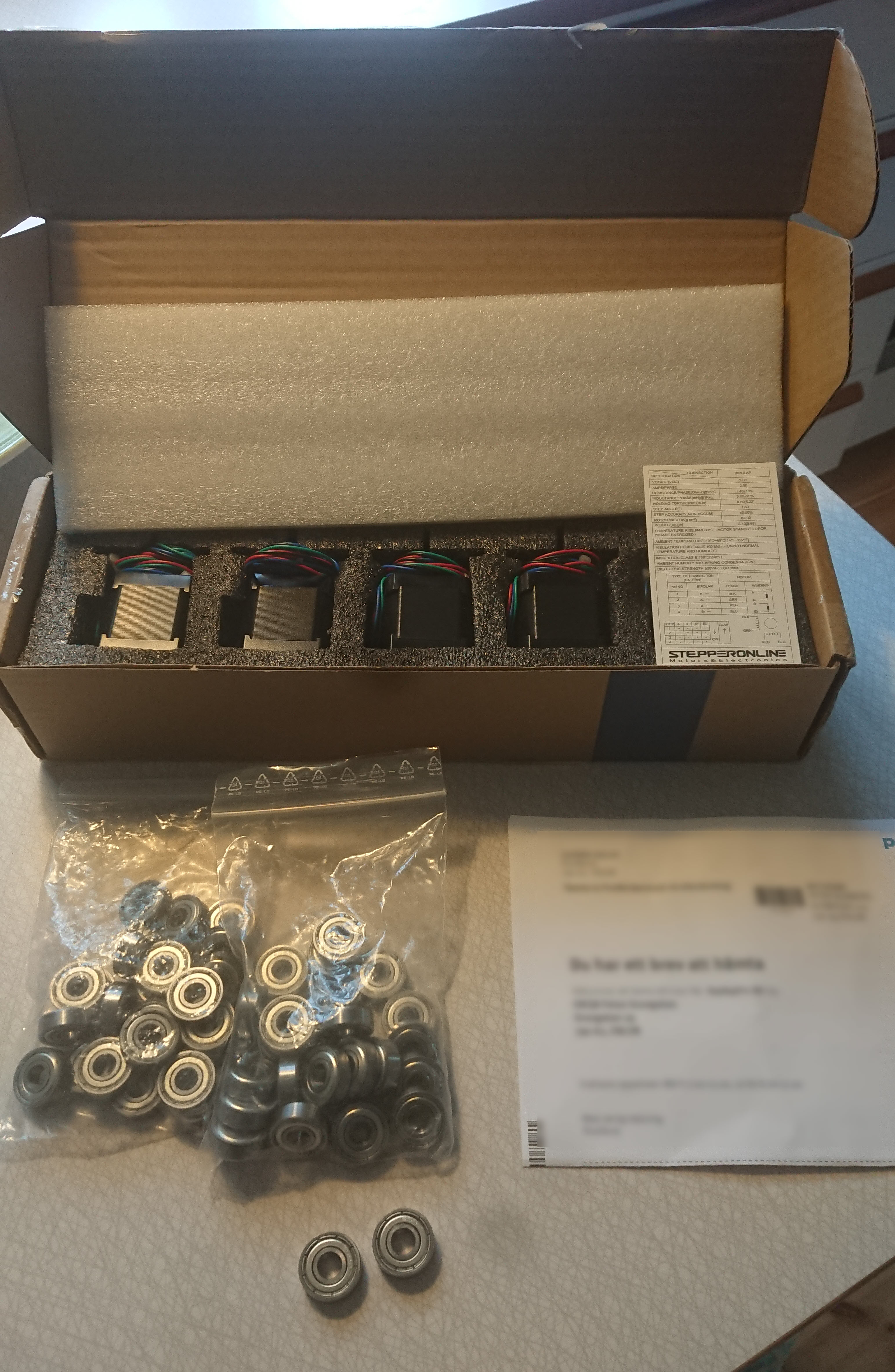 Steppers and bearings arrive! These are the Nema 17 2A 59Ncm(84oz.in) steppers.