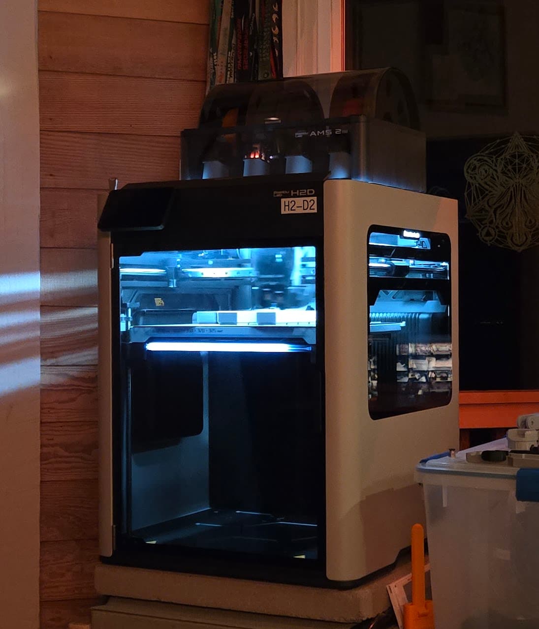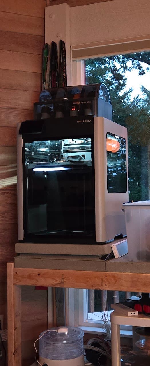 So far there’s nothing not to like. I had a squeak show up about 10 - 15 hours in. Thought it might be one of the steppers, popped the back off and pulled the stepper and the two pulleys back there, nothing felt off. Put it back together, and no squeak. Belt tension is stupid easy. It’s just a spring on one of the pulleys. The AMS’s are a touch loud at the end of a print when they retract the filament back into them. This thing is way quieter than my railcore. There’s an led strip under the bed which will flash red for errors, but generally just shows the print percentage. That’s pretty neat.