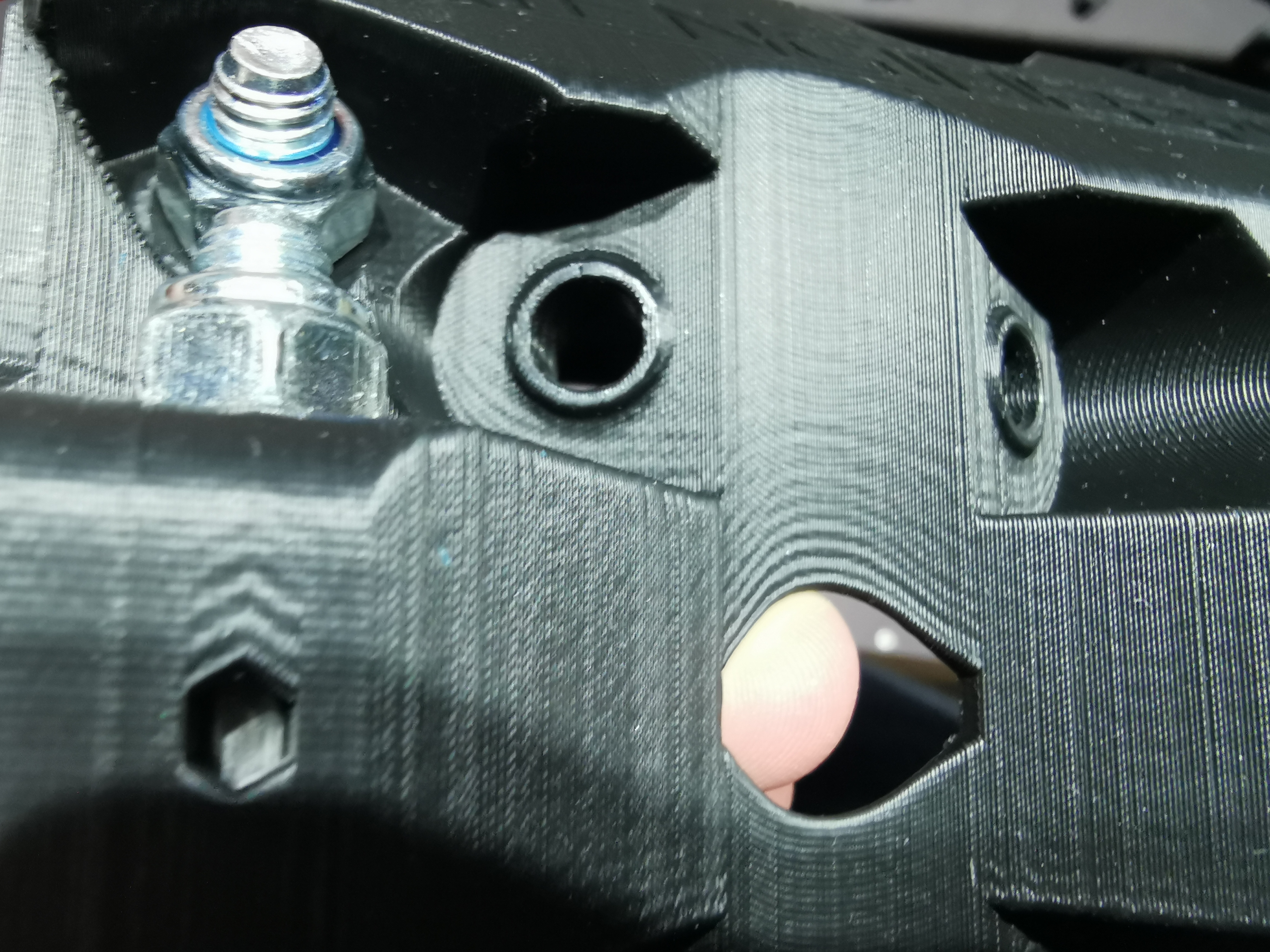 Make sure your bolts go through those holes fairly well, if you have printing defects if can impact this next step.