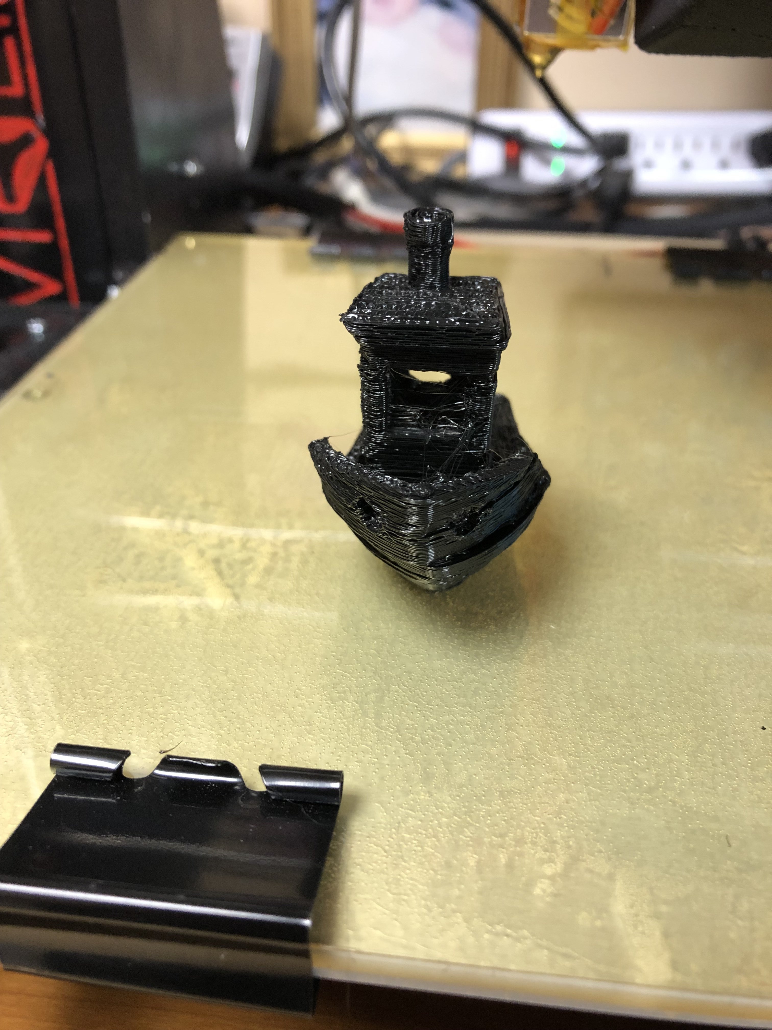 So, Boaty McBoatface didn’t come out so good (Which I kinda knew would happen, I just wanted to see what happened when I printed it). Here are some pics and I’m hoping you guys can point me in the next direction for figuring out what is going wrong. My bed is moving smoothly, the “bumping” I’m getting it the extruder tip hitting previously laid down filament. I think I’m either over-extruding or over-heating maybe? I’m also wondering if my 0.4mm tip is defective (or just damaged in some way). My next test will be to swap it out for a brand new one (that I will be pilfering from my buddy’s MP3DP that is sitting next to me right now and has never even been powered up, lol). Any other suggestions from the guru’s of all melty plastic thingys???