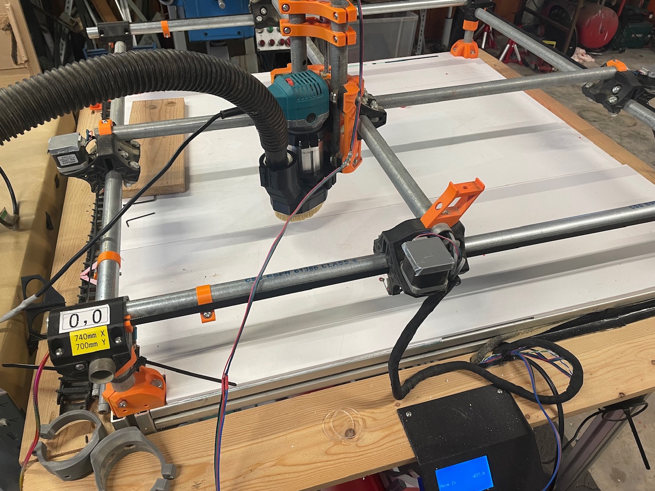 Anyway, with the bit not quite touching, and the spindle running, when I press GO! on the job, the first movement is 5mm up (as expected), but then it just never comes down enough to contact the material, let alone cut.
