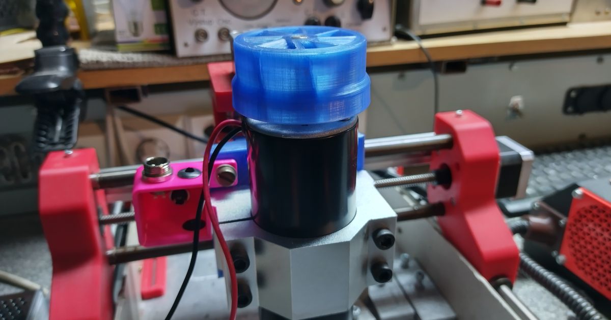I’m noticing a little vibration when cutting, but nothing that I would think is too bad. Granted, I have no idea what ‘right’ sounds/feels like. What really worries me is that after about 12 minutes of cutting, the spindle motor is too hot for me to touch. I’m worried that it’s approaching the Tg temp for PLA, which is what I assume the holder was printed from. If that begins to soften, I could have a serious issue. How hot should this spindle get when cutting? I don’t have any sort of speed readout, so I have to guess. I’m running it at about 95% of “wide open”, based on the dial control. I turn it all the way up, then down just a little to kill a harmonic buzz.