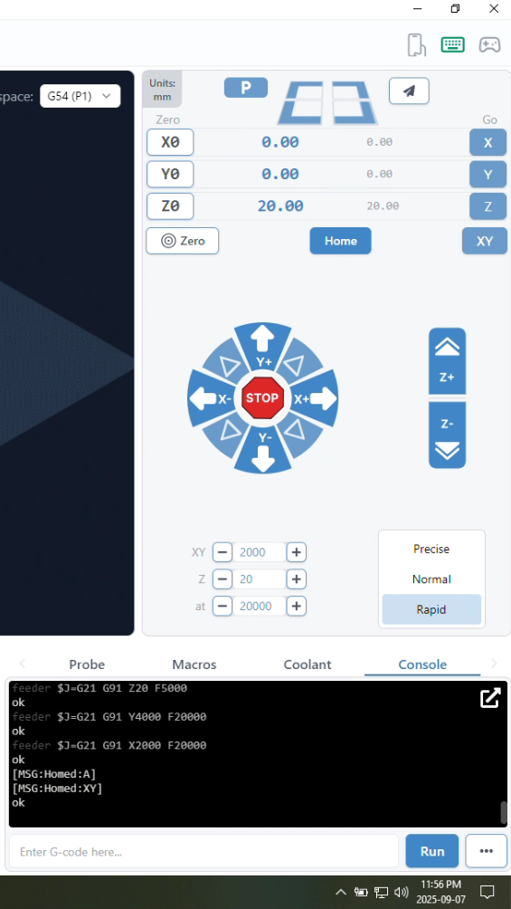 I’ve switched over to gSender, which is fantastic, but it won’t enable homing unless all axes have switches. Or at least that what it seems to be telling me. I haven’t had a chance to dig into it.