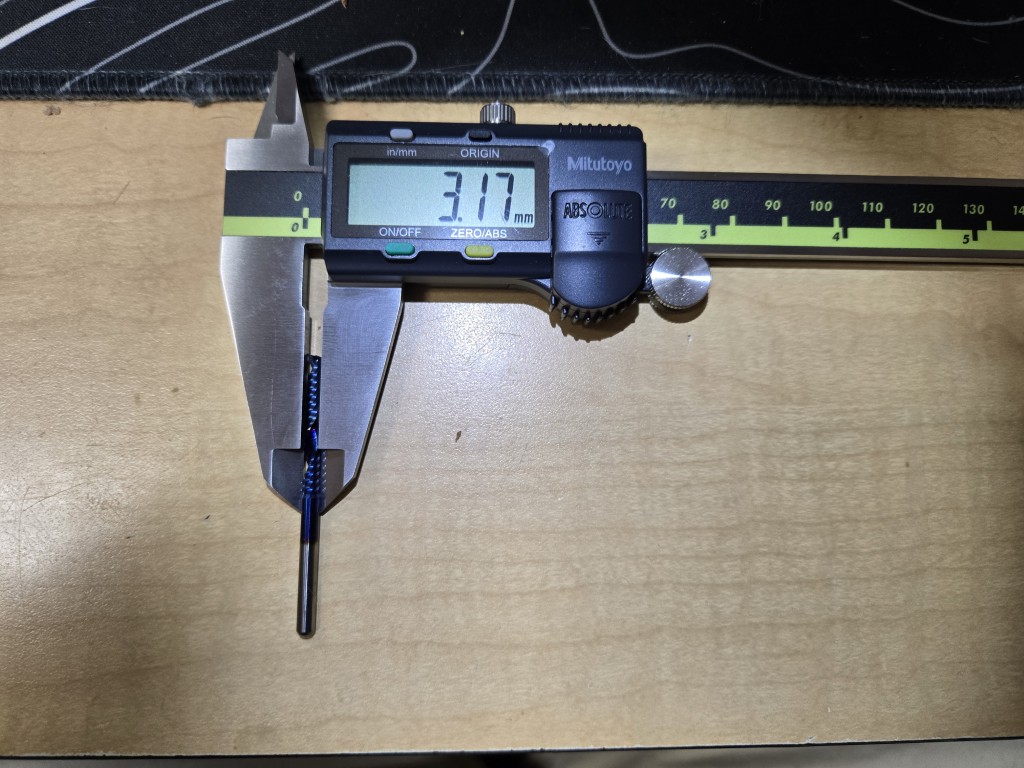 My bit is a 1/8” (3.175mm) spiral O-flute upcut. I thought the tool was undersized, but it checks out.