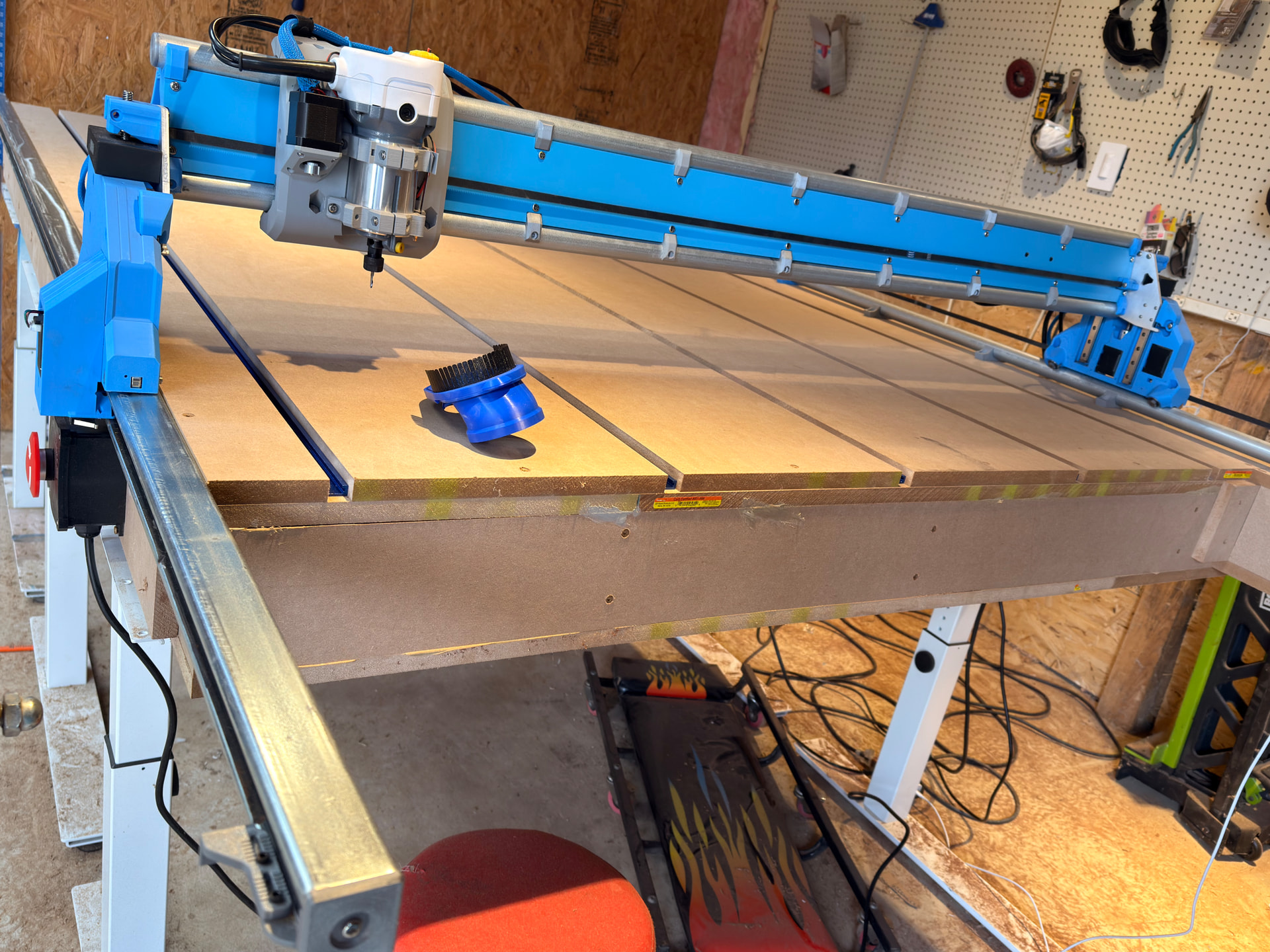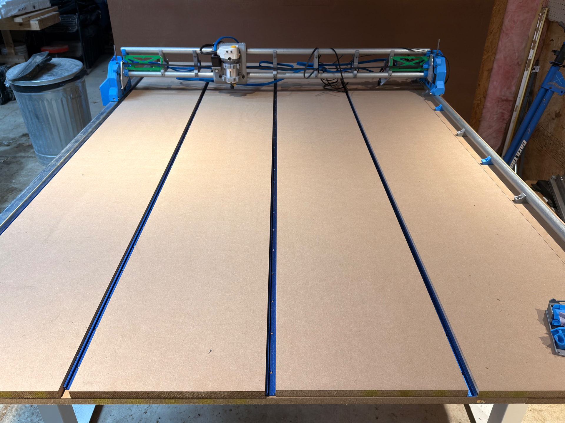 Had a few frames from sit/stand desks I got for free a few years back after one of those co-working places closed after COVID. Think they are going to be plenty rigid enough, a plenty adjustable to get a good level on them. Add some t track and a cut spoil board, close to ready.