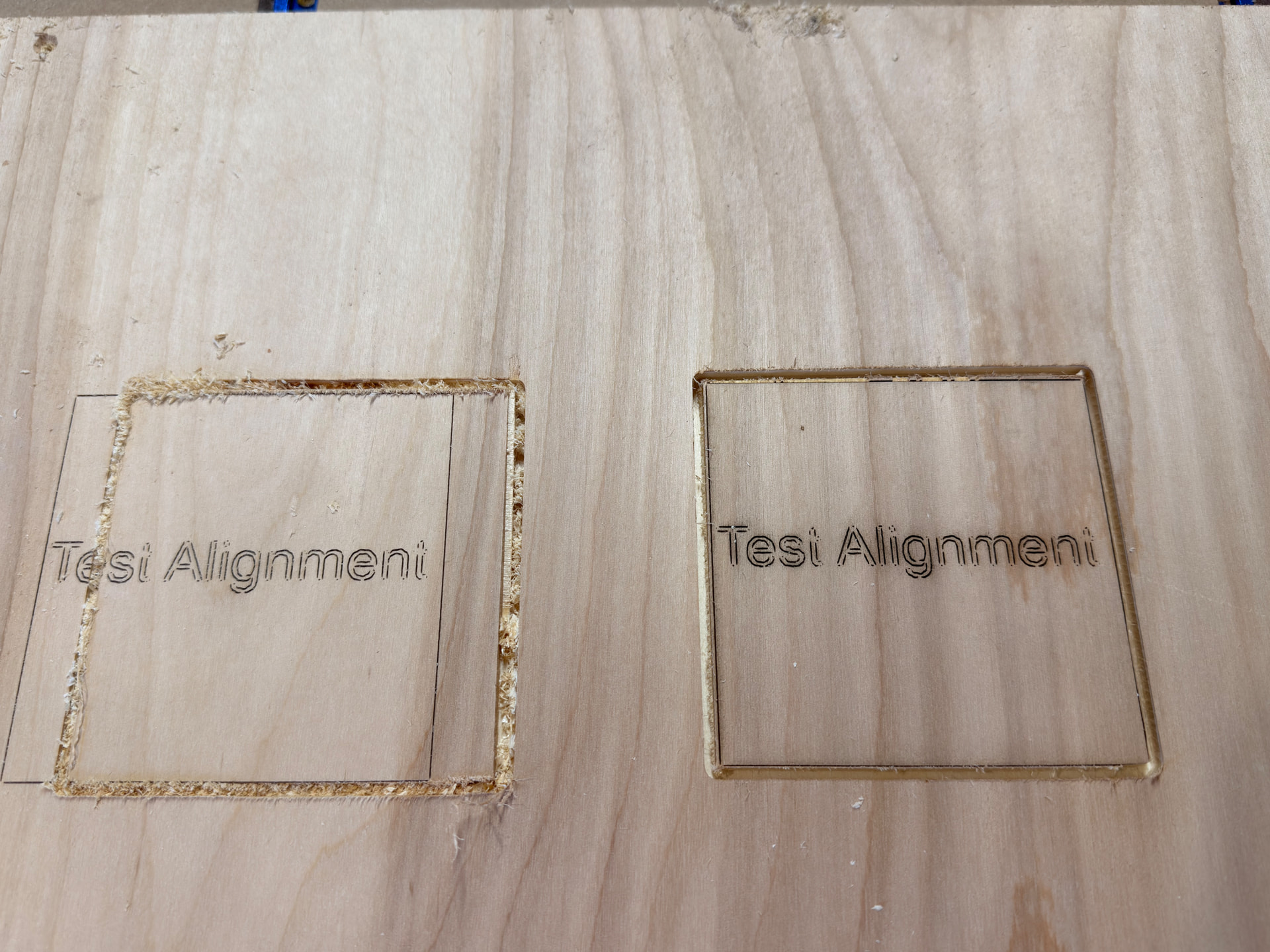 Built a little gcode spliced from Lightburn and MillMage, then run from the SD Card. On the 4th attempt got them pretty lined up. There is a bit of a drifting going on the top of the router cut, maybe I pushed a little hard on the spindle bit?