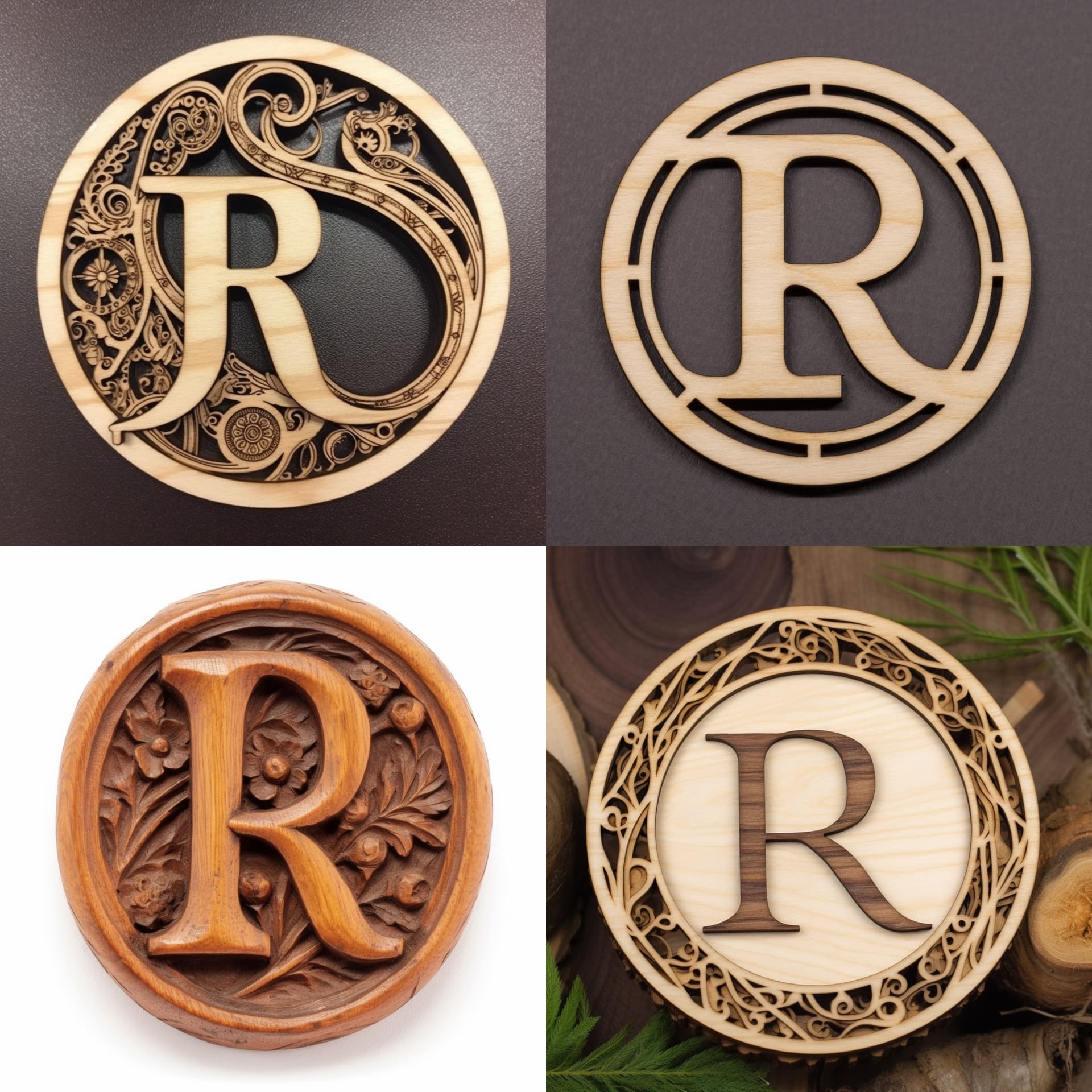 Not far off. I had Midjourney create it with the prompt, “laser cut wooden letter ‘R’, circle, steampunk.” For anyone who is interested, here are four alternates produced by Midjourney (with slightly different prompts):