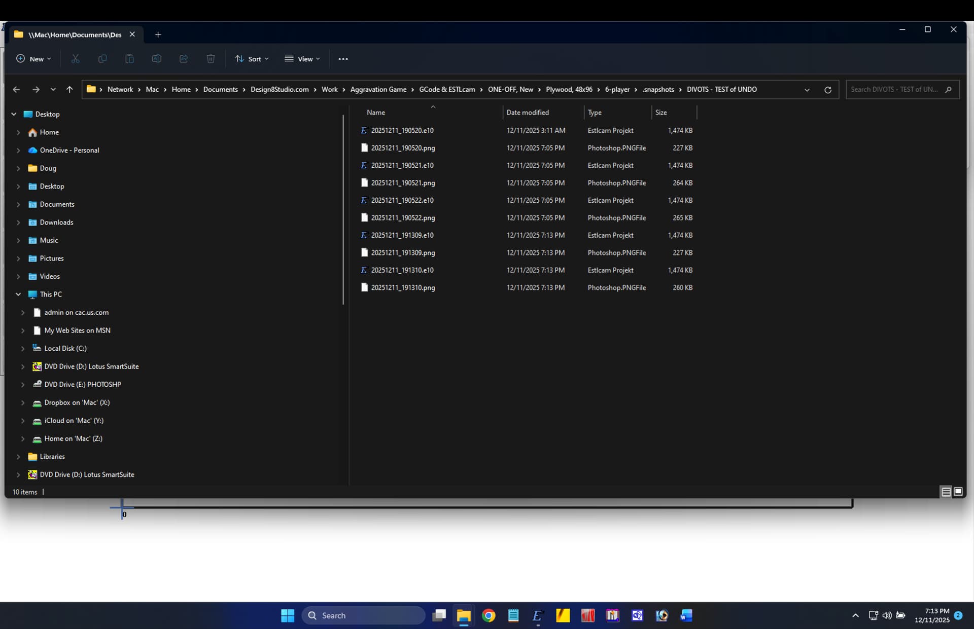 ADDED NOTE: On a Mac, any folder starting with “.” (dot) is invisible/hidden unless some step is taken to unhide it, but that’s no problem at all. I can see the snapshots when I look at the project folder from the Windows file explorer.