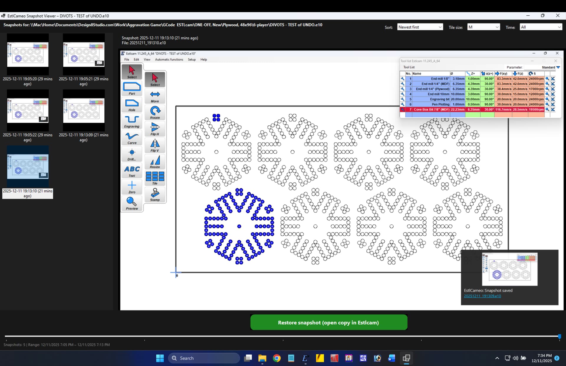 Estlcam 13 includes backup and restore, not regular undo, so, I owe you a shandy or half a beer (e.g. coors light) for now…