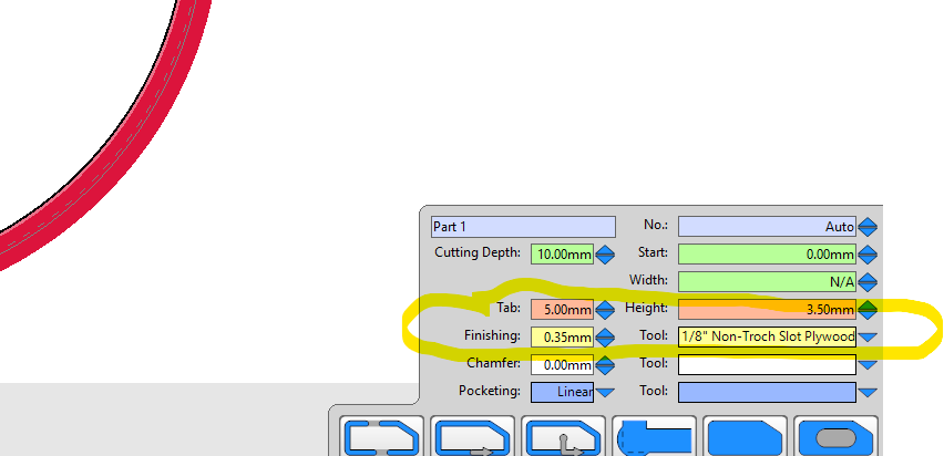 - Enter my material thickness + like 1-2 mm to make sure I cut through it