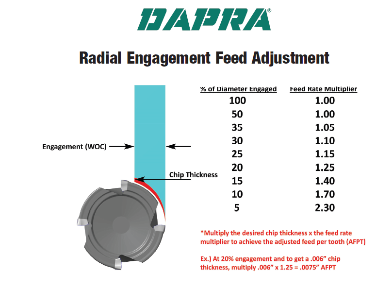 Feedrate - I normally use the suggested chip load to calculate this for standard milling, but I’m not sure how to calculate feedrate from chip load using Trochoidal. Everything I have read says that you can and should increase the feedrate using Trochoidal. Or should I just continue to use the same feedrate as regular, but with a much deeper DOC?