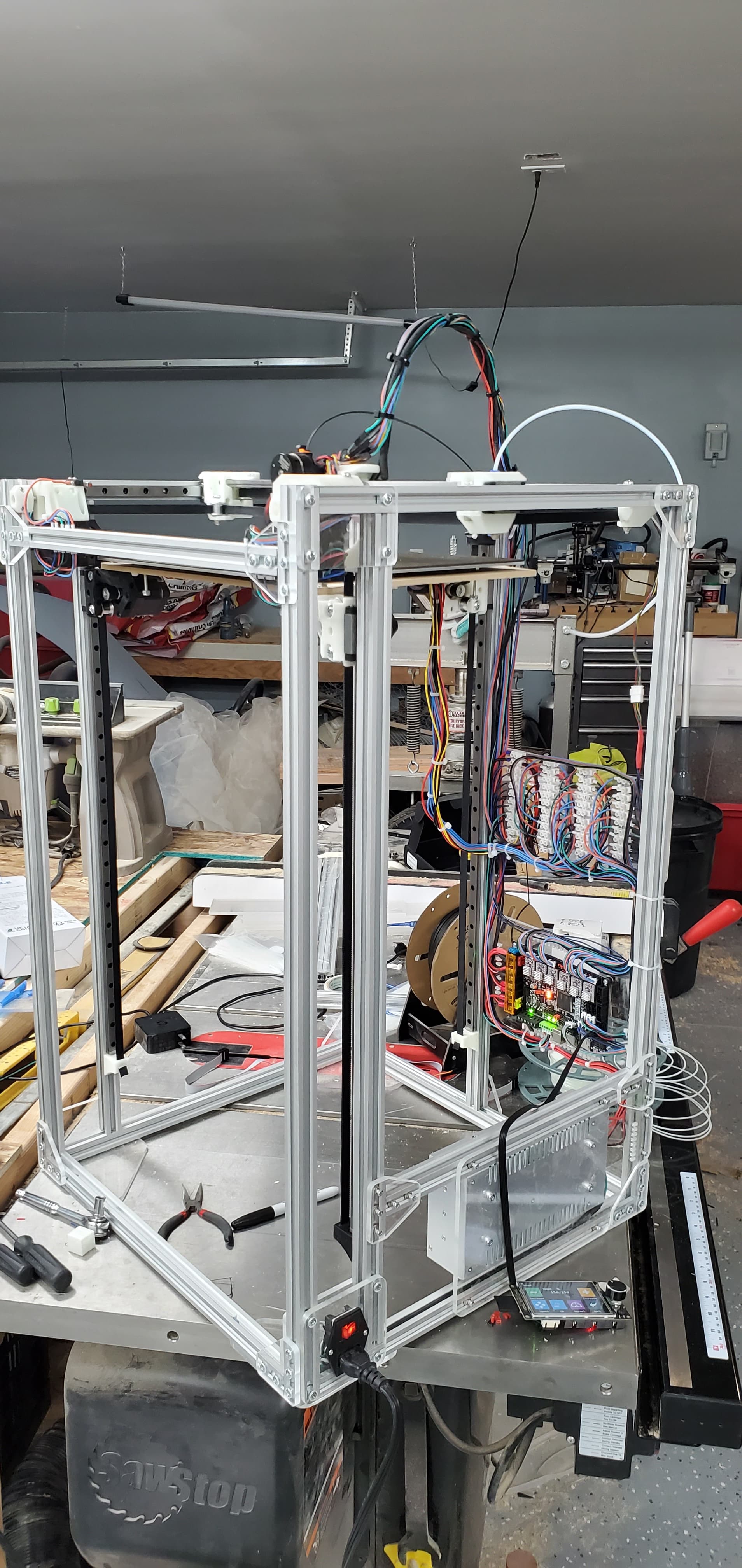 The goal was to have everything disconnect very close to where it lives and never have to pull wires off or through the machine unless the wire is bad. Maybe I’d have also soldered screw terminals to the skr for the motors, endstops, and thermistors. Only wire that’s different is for the extruder because I wasn’t willing to cut that one until I knew it worked well. It’s the one hanging in the back corner.