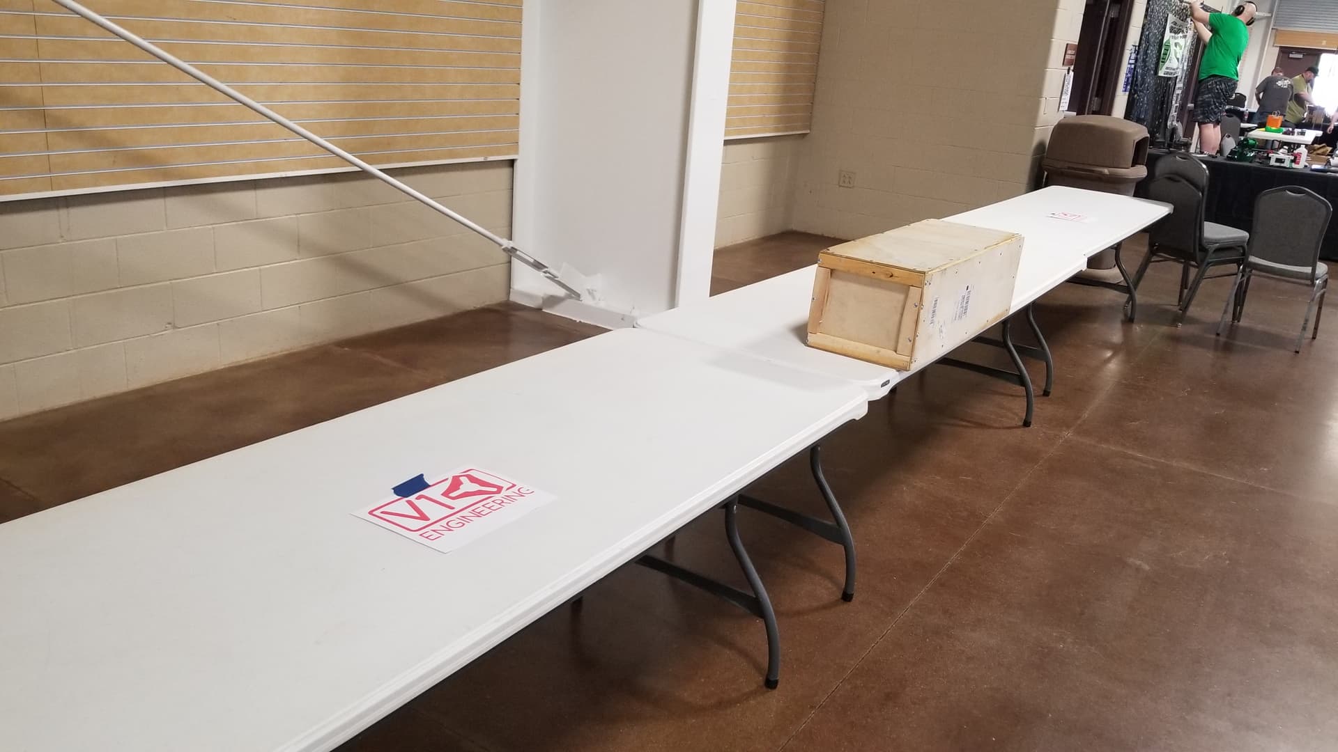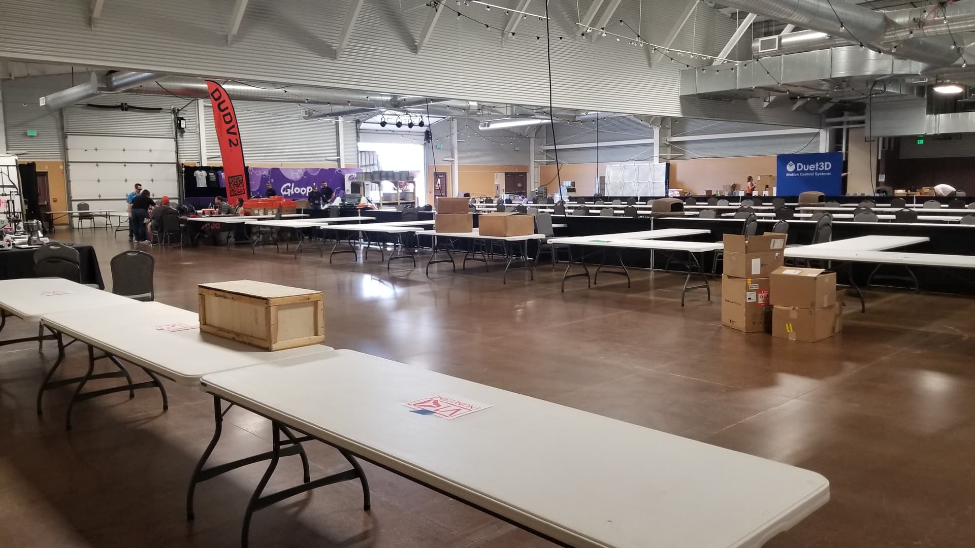 First! Um, I see one sturdy box from @Jonathjon, and very empty tables … Maybe organizers are still unloading.