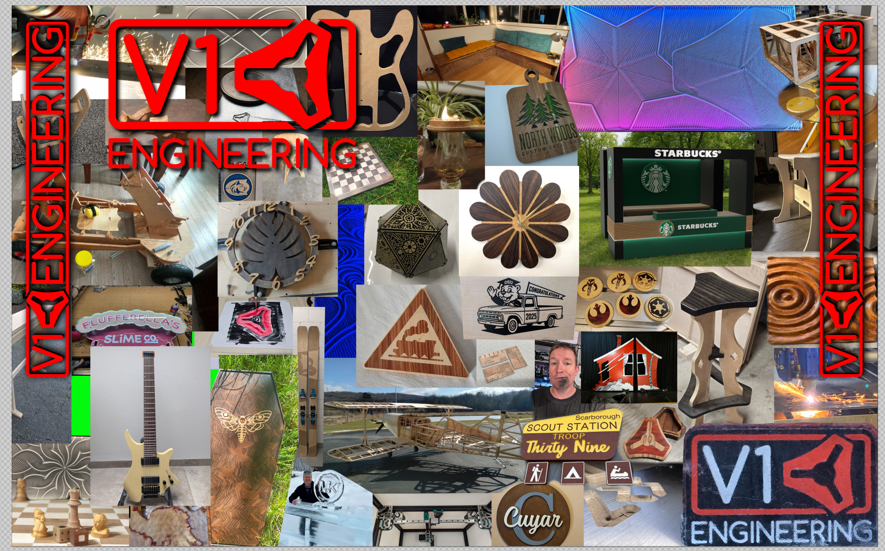 Not to pour cold water, but if the main background people see from a distance while walking by is a circuit board, they may assume that you are a circuit board maker, rather than a CNC/3D Printer/Sand Art Machine maker.