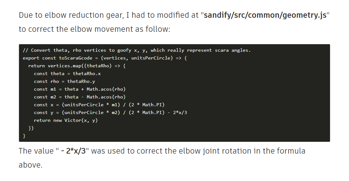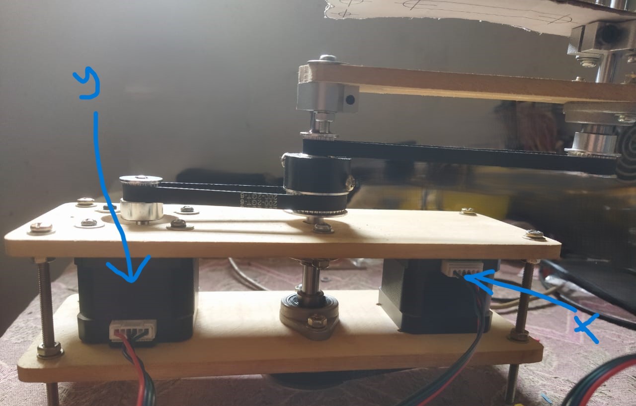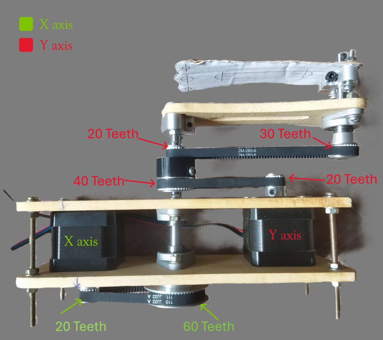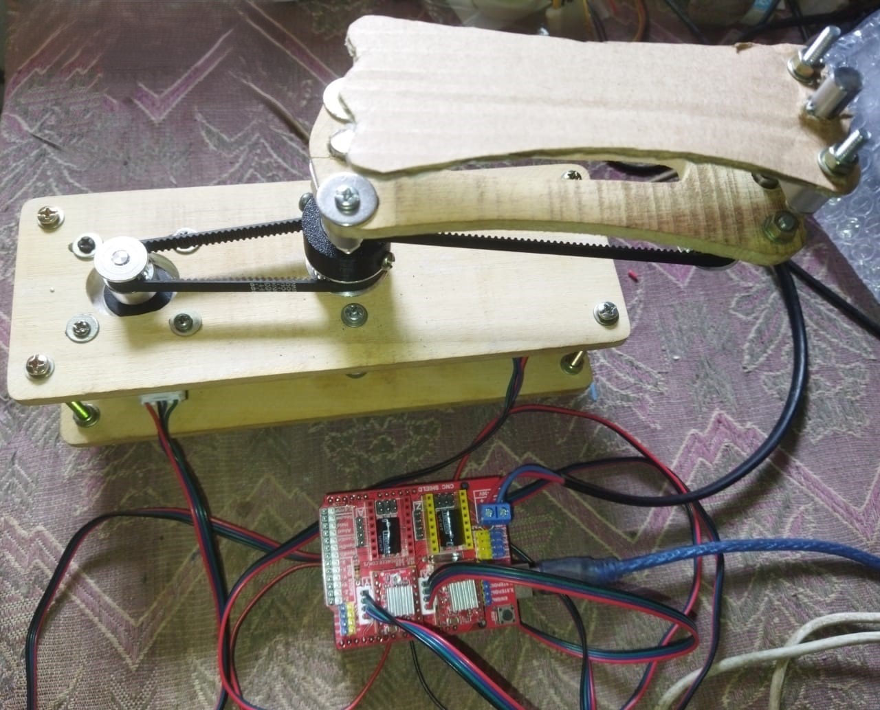 and images of the robot (arm length=115mm, cnc shield microstep resolution = 1/8, Gear ratio of both axis 1:3)