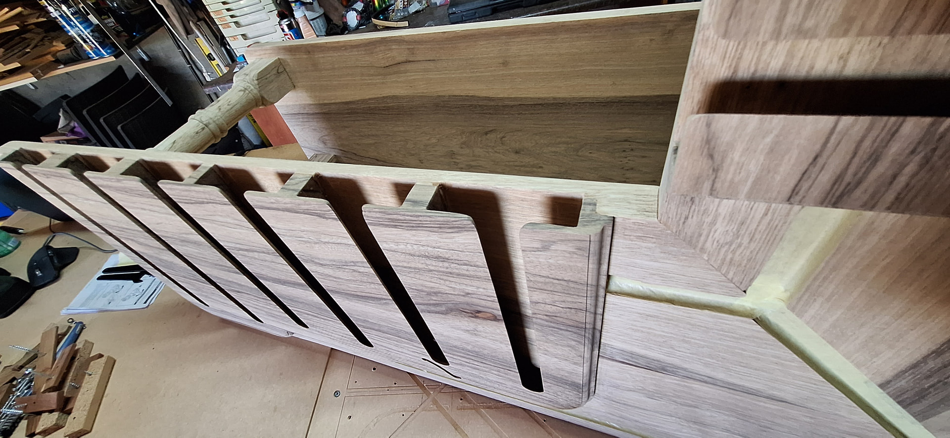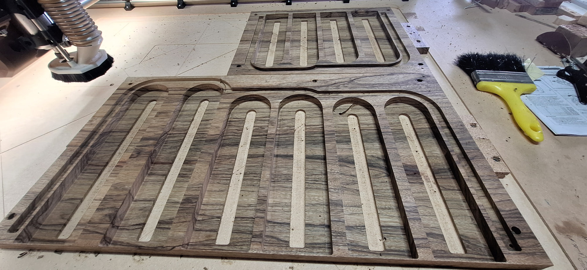 Only 2 things not done on the LR4 are the turned posts which I did on my lathe using the copy attachment and a 3-D printed profile matching the table legs in the room. Will get a rotary axis for the LR4 going some day….The other is the edge molding which was done on my router table.