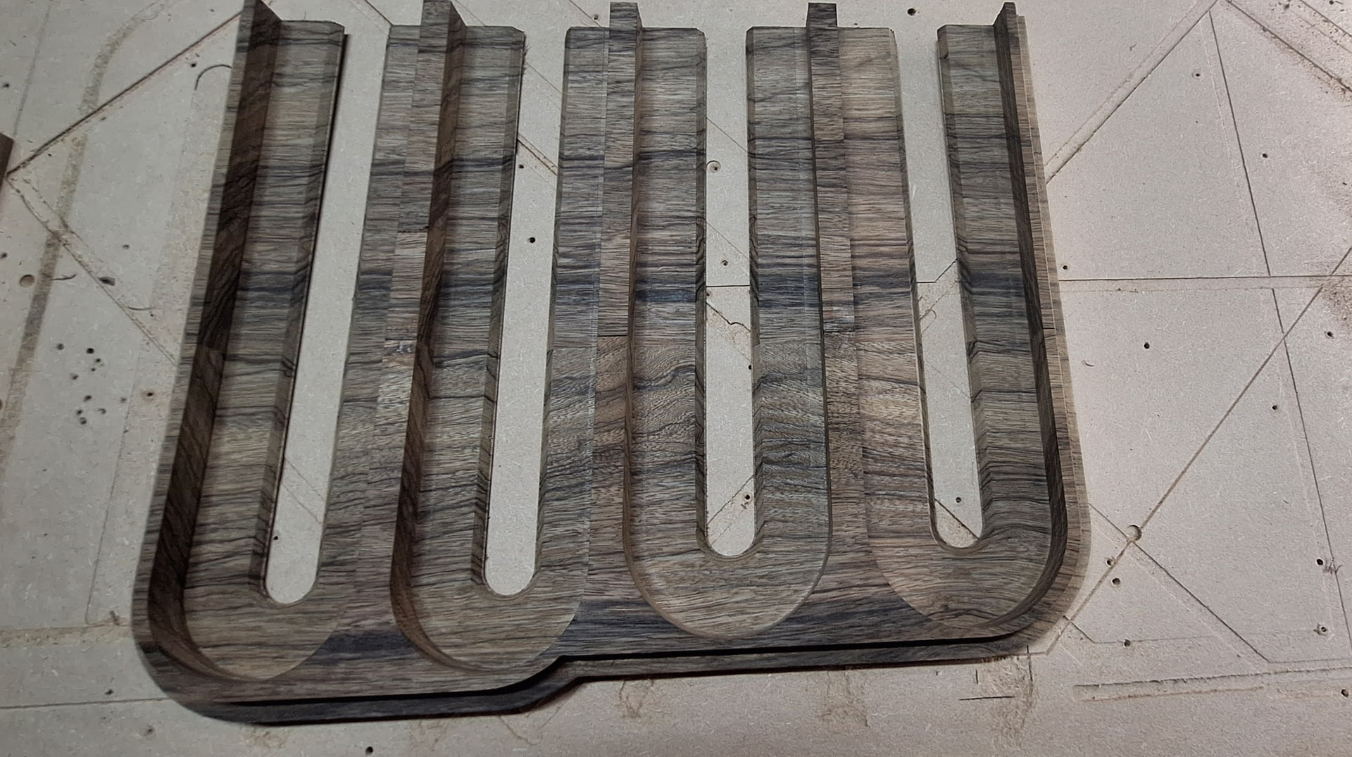 - Cutting out Wineglass inserts (Plug in inlay context) from new material.