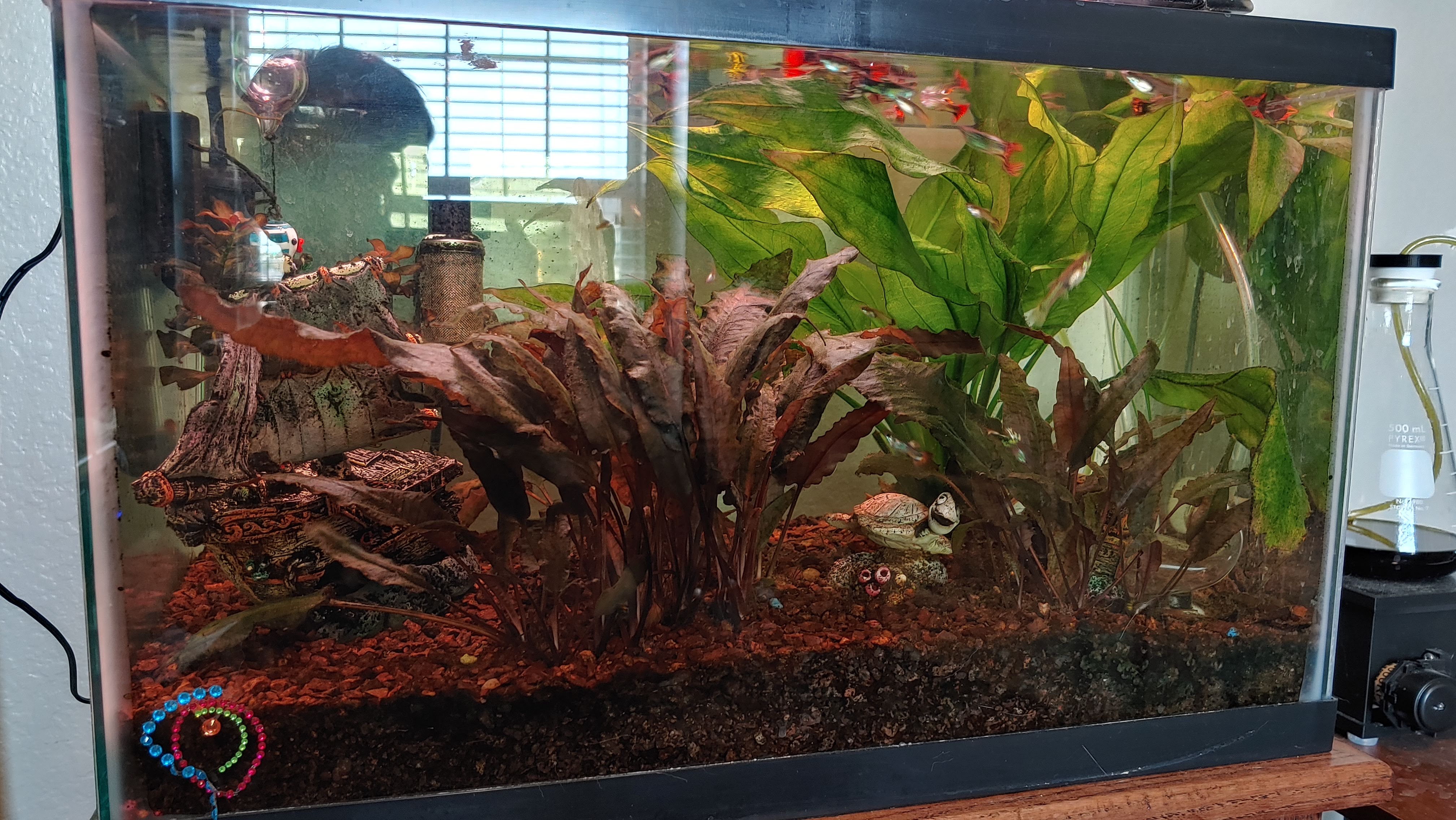I’ve had a 10 gallon ‘planted’ tank since we moved in to this house 3 years ago. I’ve been slowly making it more complex and I’m now dosing ferts once a day using a home-made doser and I inject CO2. With all the extra nutrients, the plants overgrow the tank pretty much weekly.