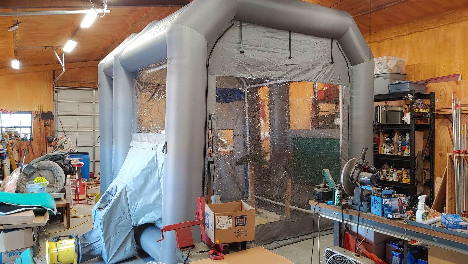 New toy for the shop… Inflatable paint booth. I have a bunch of motorcycle painting coming up and decided to upgrade my painting tools. This will help to get the bad fumes out of the shop.