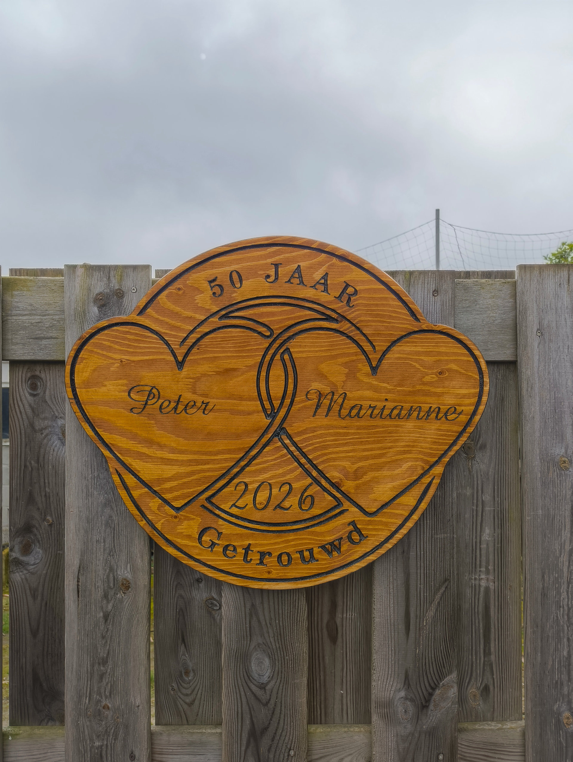 The sign says 50 years married in dutch.