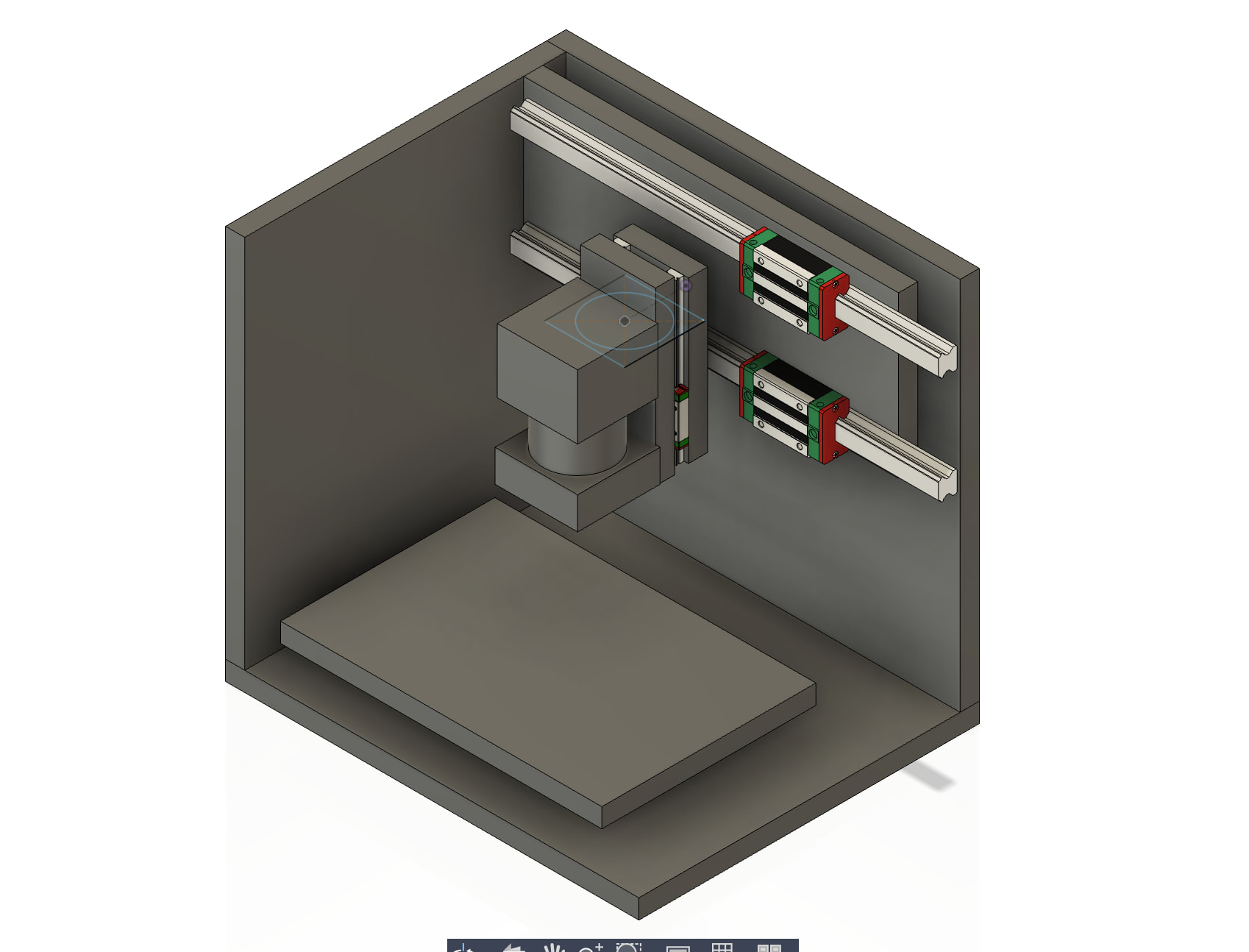 Then make the same thing in Y at the bottom of the box with the moving “bed” riding 2 rails…