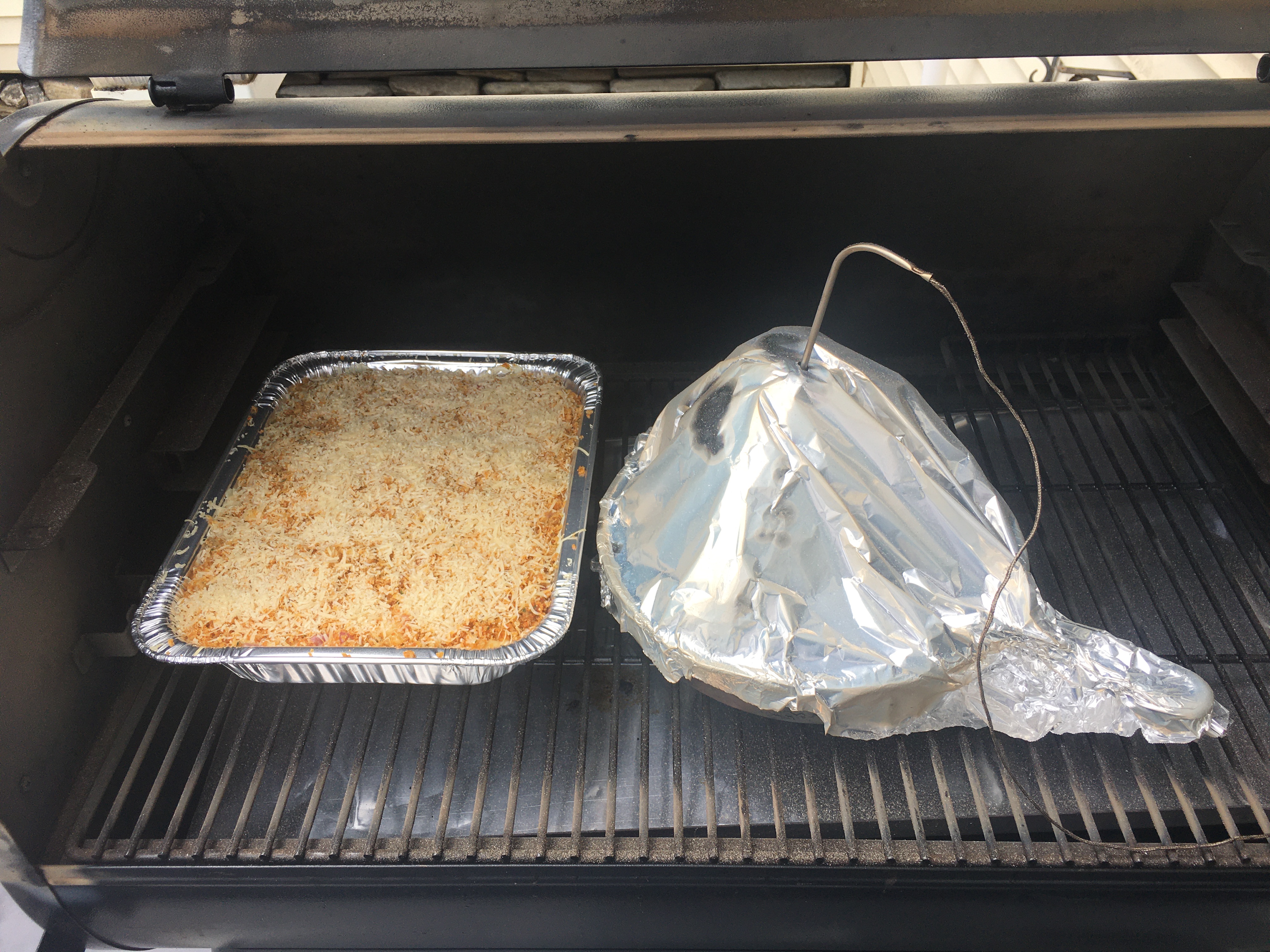 The smoke setting is pretty interesting. It has multiple settings. The settings changes how long the controller waits before triggering the igniter to keep the pellets smoldering. The higher the number, the longer the wait. The longer the wait, the more the embers die down, so that when the igniter hits, it produces more smoke. Although, the longer the wait the colder the pit runs. When I smoked the Turkey last Thanksgiving it was a rather cold and wet day. I had to move the smoke setting from the normal P4 down to P2 to keep the pit above 150. It didn’t produce as much smoke at that setting. I ran it that way for about an hour before setting it to 225F.