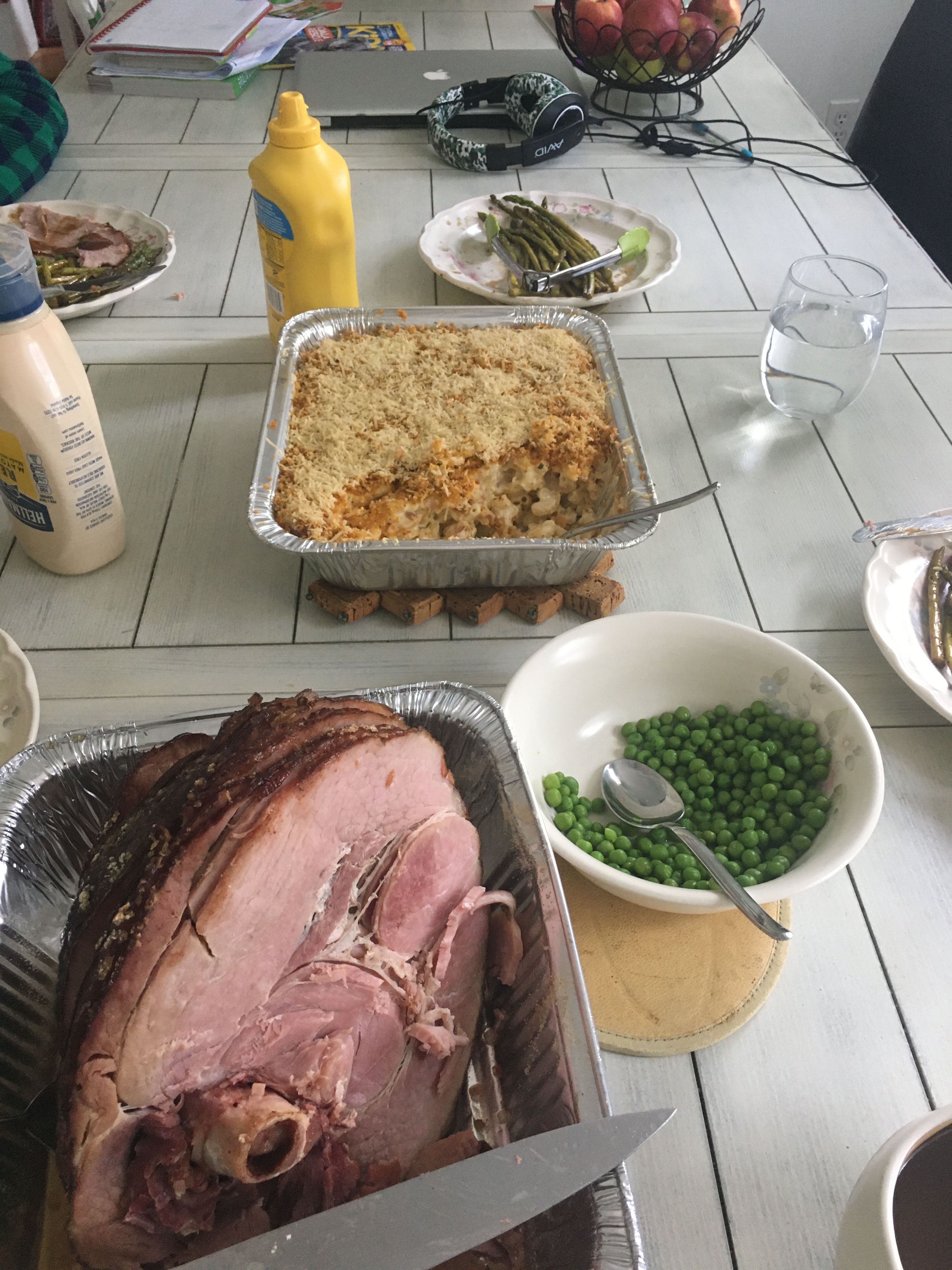 Didn’t have to get up that early, but I was up at 6:00AM to setup the Easter egg hunt and at about 10AM the spiral ham went in…and at 1PM the Bacon Mac & Cheese went in.